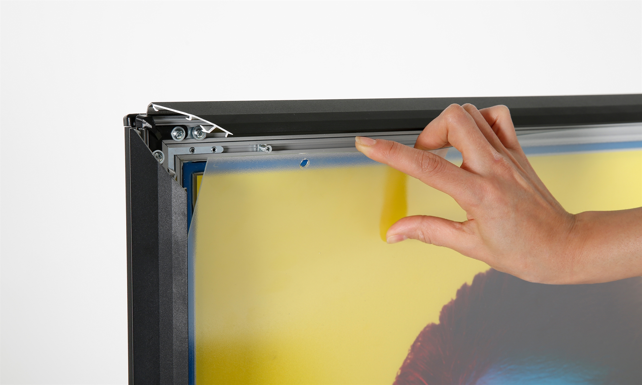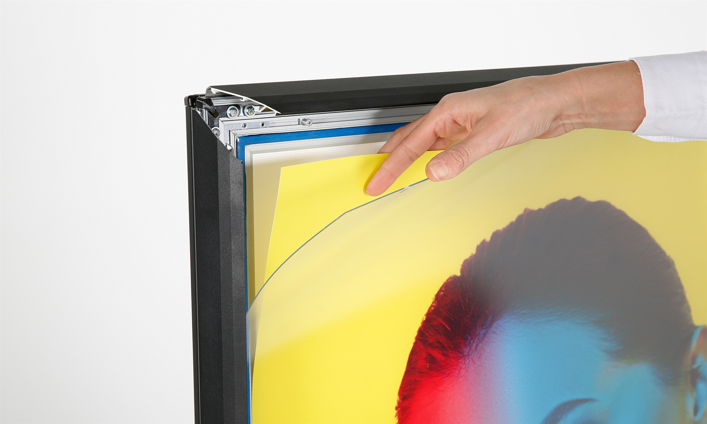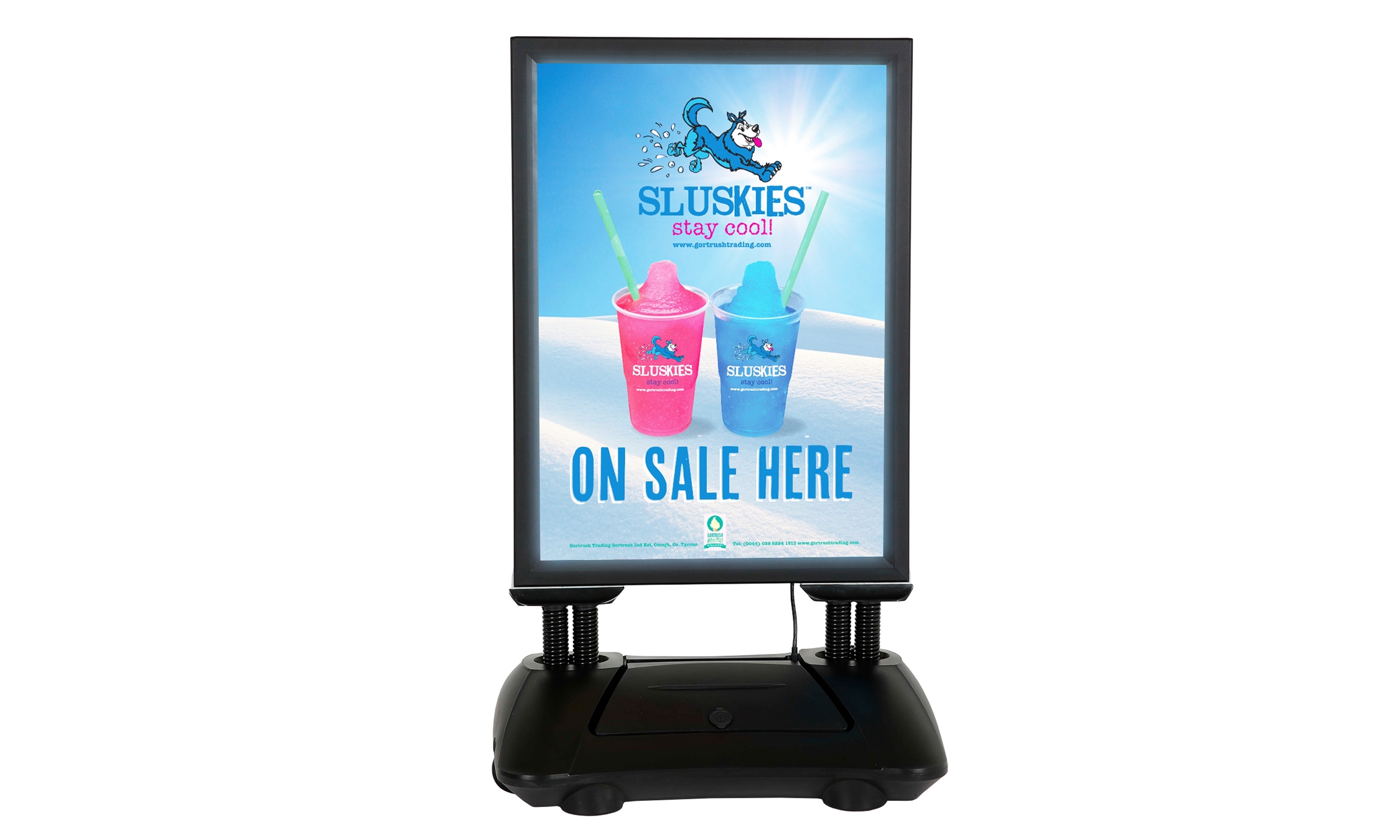 Ønsker du å skru opp sjarmen med gatebukken ditt og oppnå maksimal eksponering selv i de mørke timene? I så fall trenger du vårt svarte Wind-Sign gatebukk med innebygget LED-lys og dobbeltsidig presentasjon. Plakater kan raskt og enkelt settes inn eller byttes ved hjelp av toppdelens 44 mm klikkrammedesign. Skiltet er vannfast med IP56-sertifisering, og med gummilister under profilene på toppdelen er det sikret at regn og vann ikke renger inn bak de beskyttende antirefleks frontplatene.