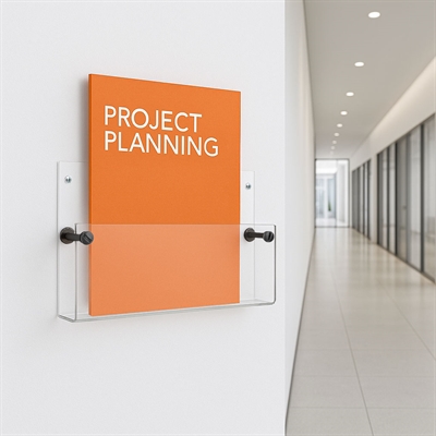 Disse vegg brosjyreholdere er produsert i 3mm akryl og passer til brosjyrer i bredformat (horisontal, vannrett, landscape).