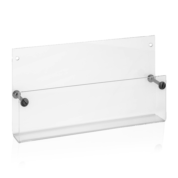 Luna akryl brosjyreholder med monteringshull til veggmontering.