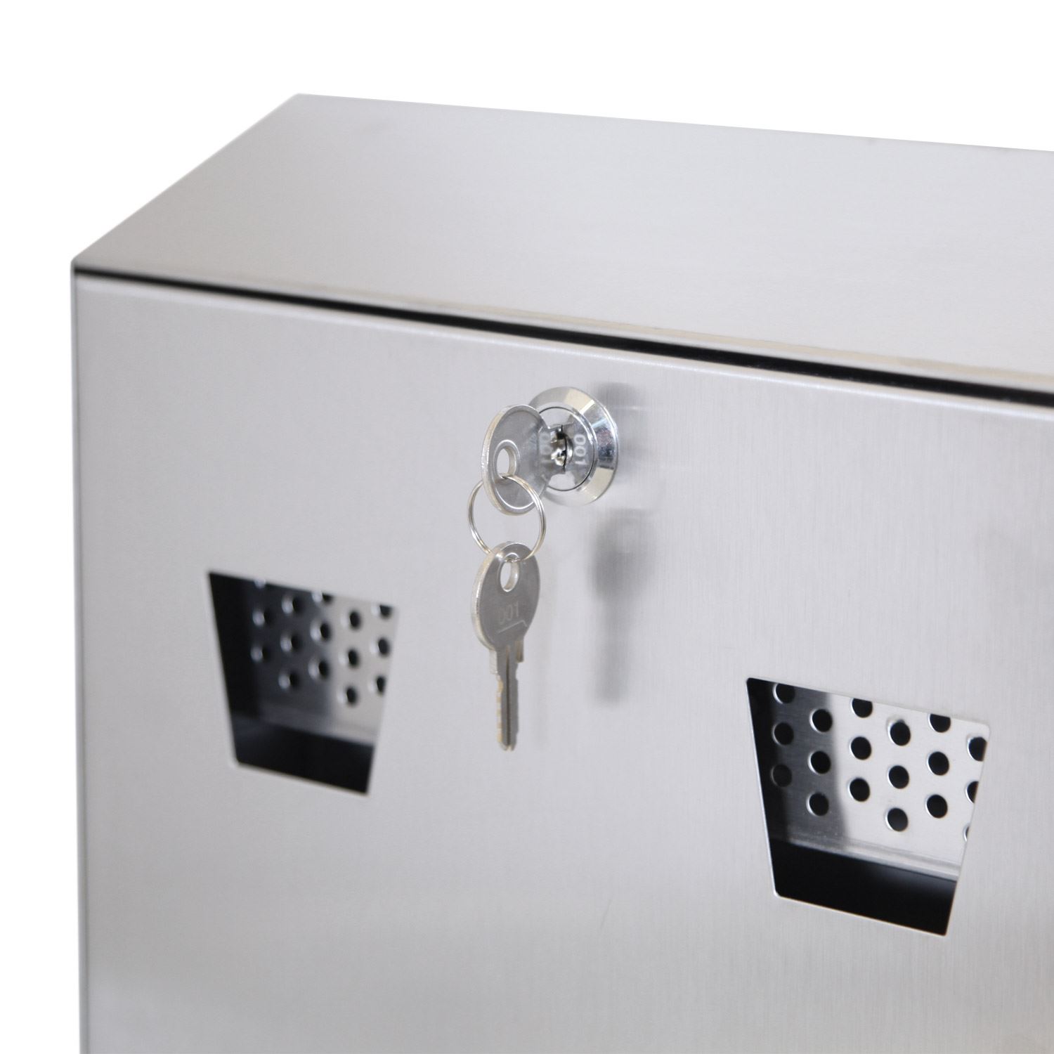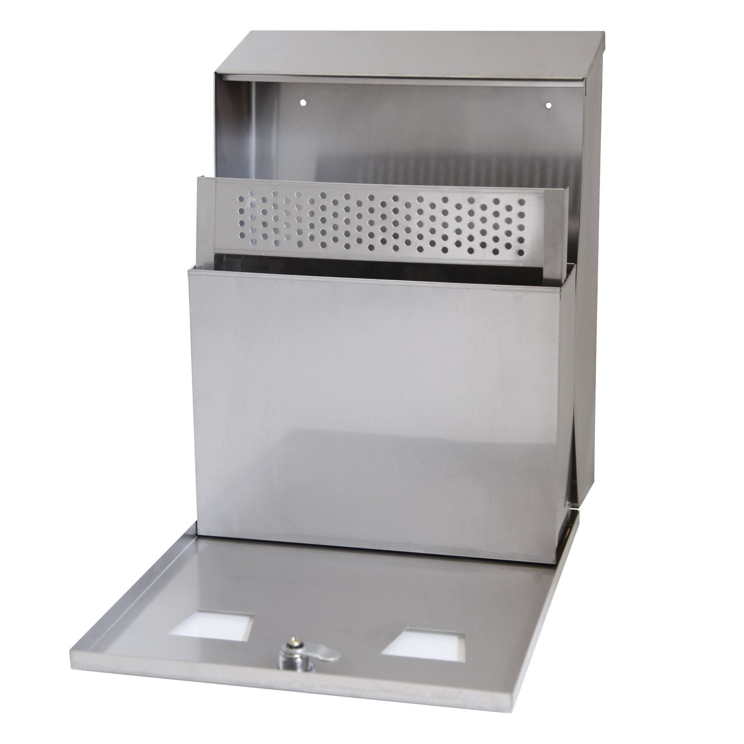 Det er lett tømme askebegeret ved at åpne fronten opp med den inkluderte nøkkeln og ta den innvendige galvaniserte stål bøtten ut.