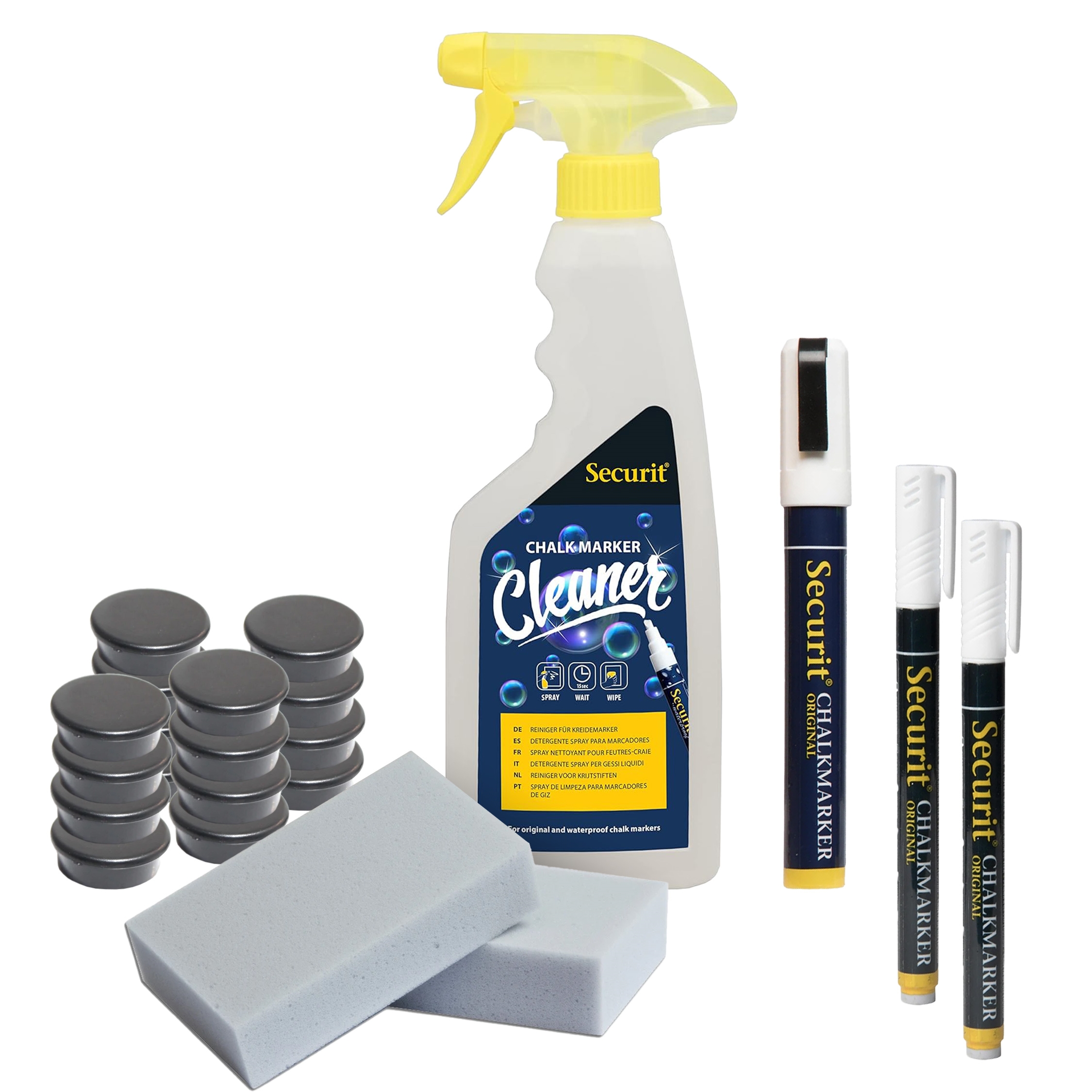 Gjør det enkelt og raskt å skrive på og vedlikeholde dine krittavler innendørs med dette komplette og praktiske settet. Perfekt for kafeer, kontorer, butikker eller hjemme - der du vil presentere beskjeder på en stilren og oversiktlig måte.