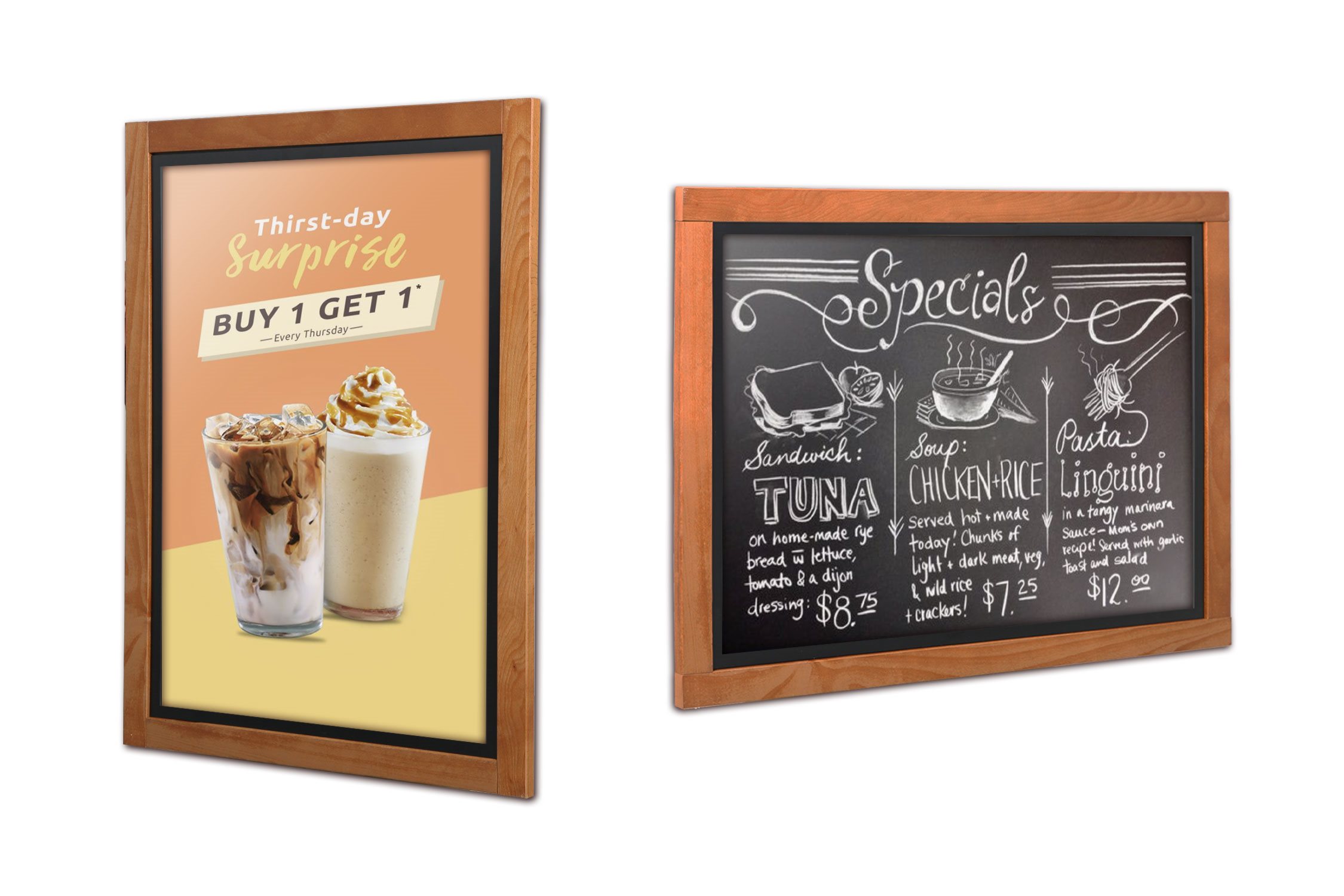 Dette fantastiske allsidige ramme kan brukes både som en tradisjonell plakatramme med en plakat eller som en krittavle, som kan skrives på med kritt eller krittpenn.