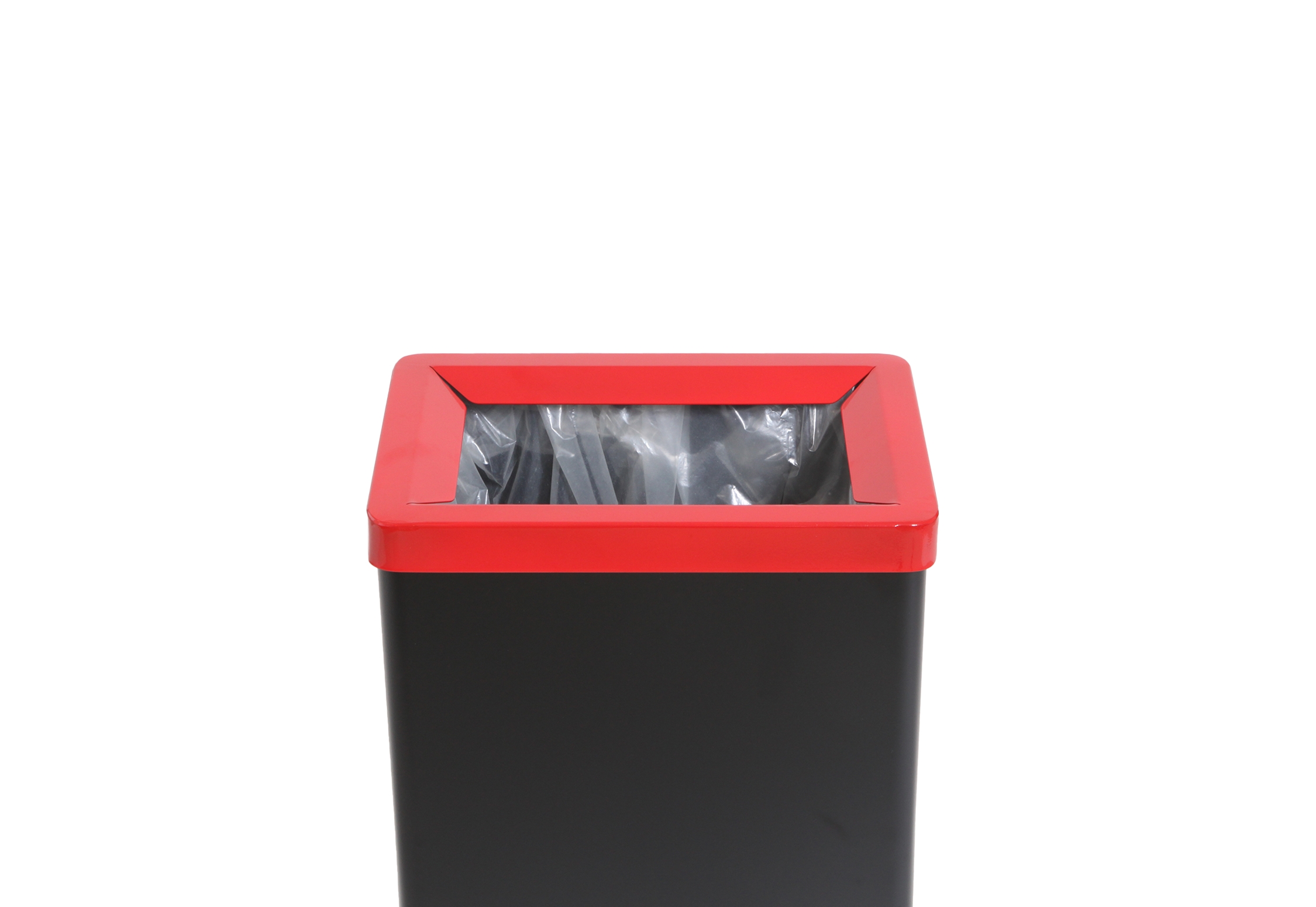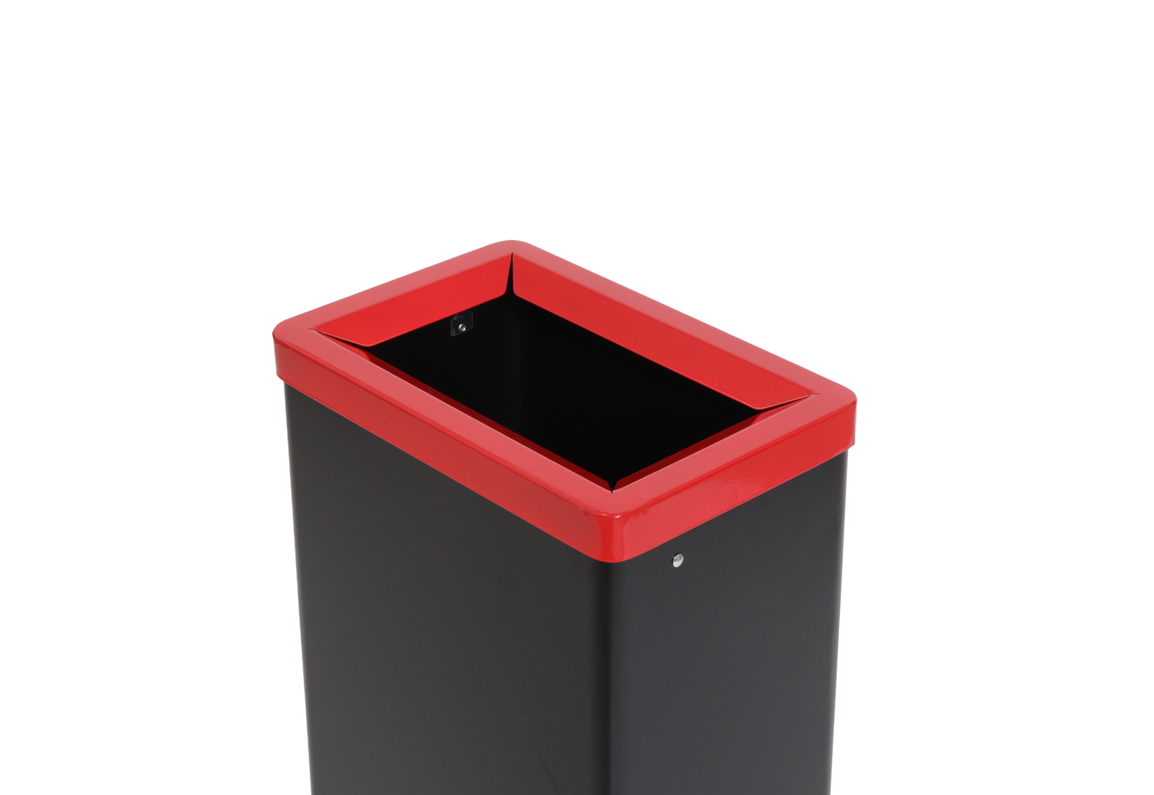 Modulær svart pulverlakkert stålgjenvinningsbeholder med farget åpning/topp for både innendørs og utendørs bruk.