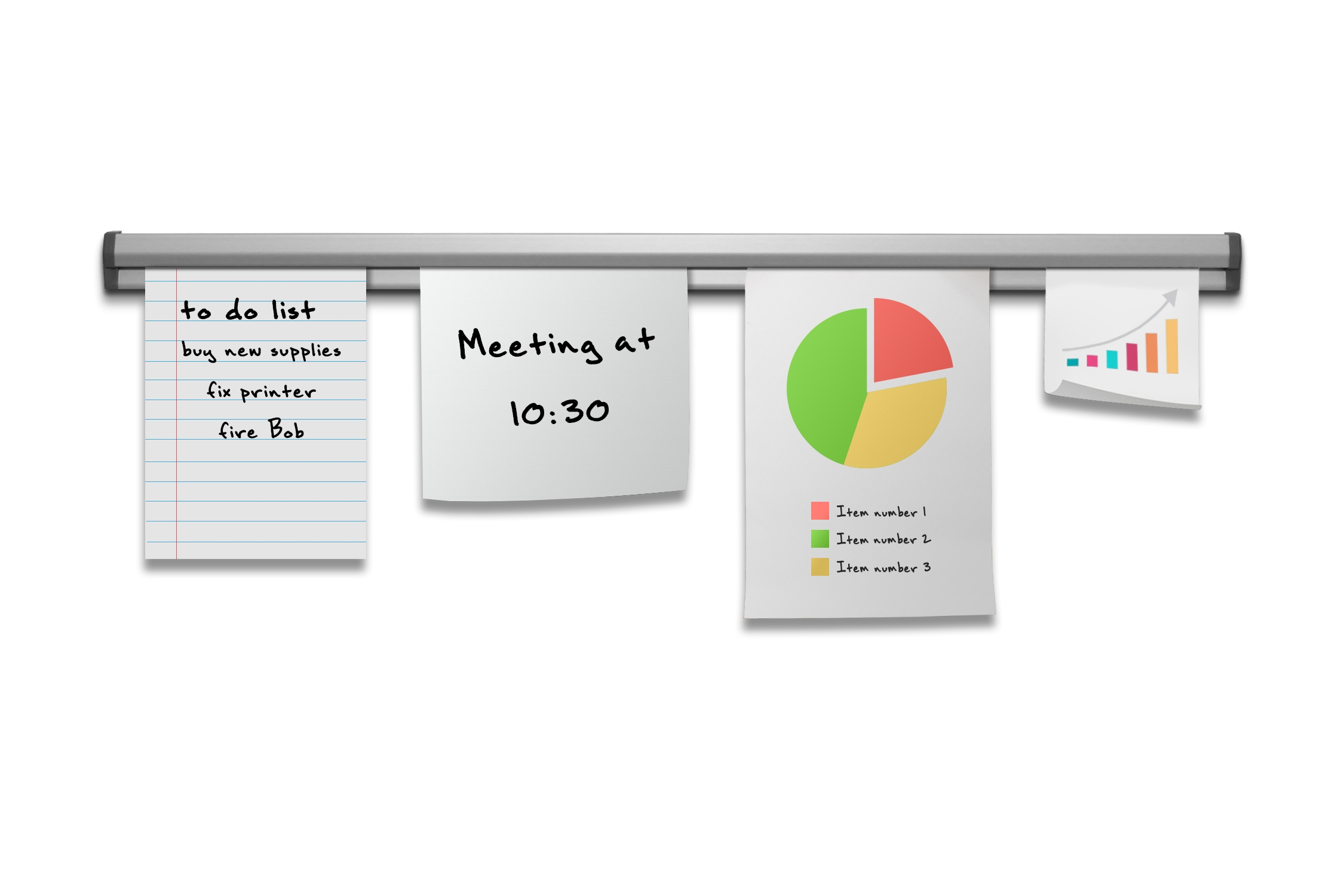 Memo Rail er det ideelle “verktøyet” hvis du har behov for rask opphenging og nedtagning av løse papirer, lapper, kvitteringer eller dokumenter. Systemet er ekstremt smart - du stikker ganske enkelt dine papirer opp i skinnen hvor en rekke små ruller sørger for å holde dem fast - men selvfølgelig ikke fastere enn at du kan fjerne dem igjen med et rykk.