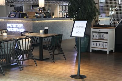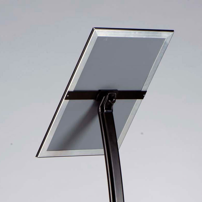 MenuPro displaystativ i buet design som både kan brukes i høy- og bredformat (liggende eller stående).