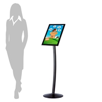 MenuPro displaystativ i buet design som både kan brukes i høy- og bredformat (liggende eller stående).