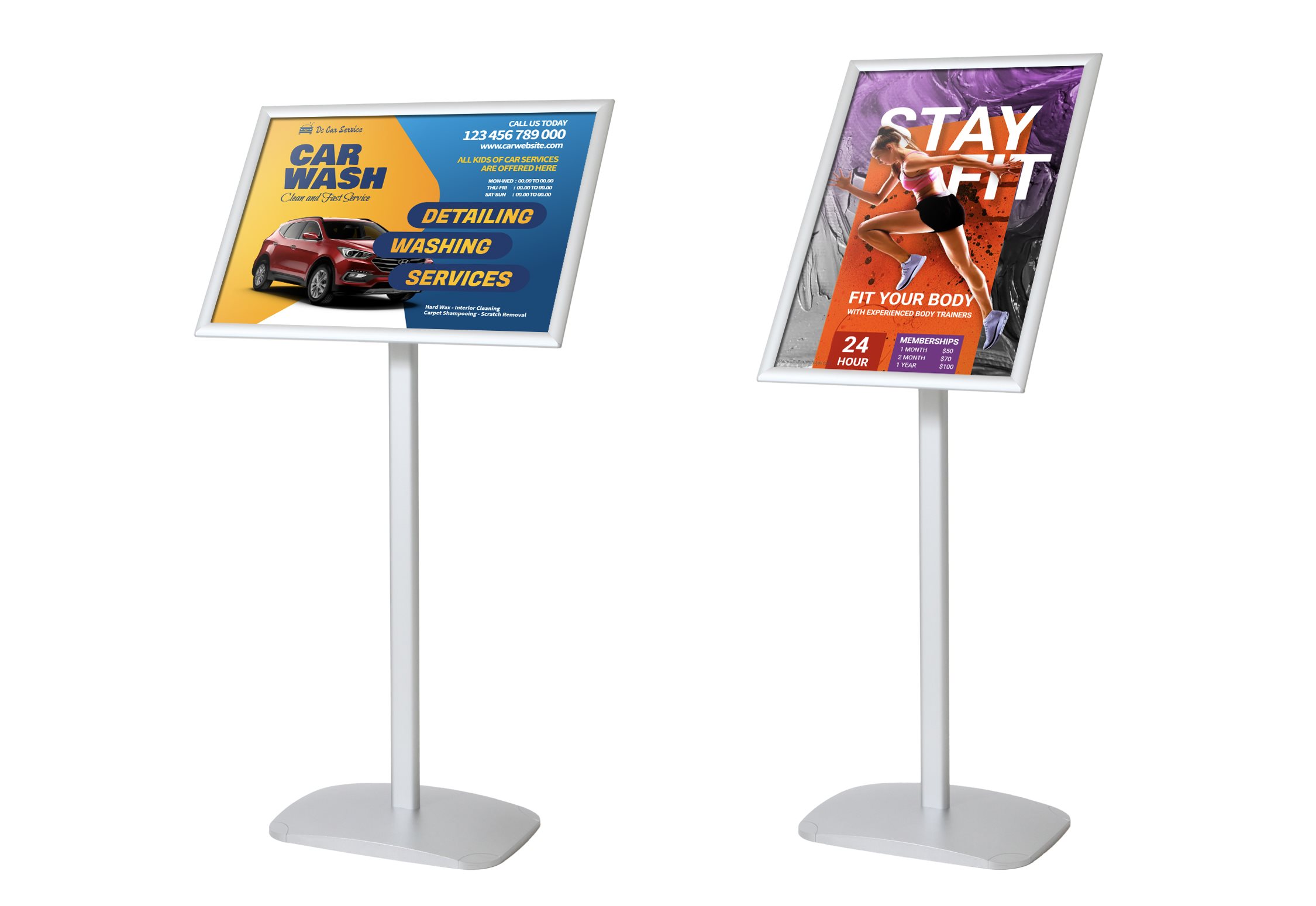 Montert med 25 mm klikkrammer og APET-frontplate med antirefleks som gjør utskiftning av budskapet enkelt.