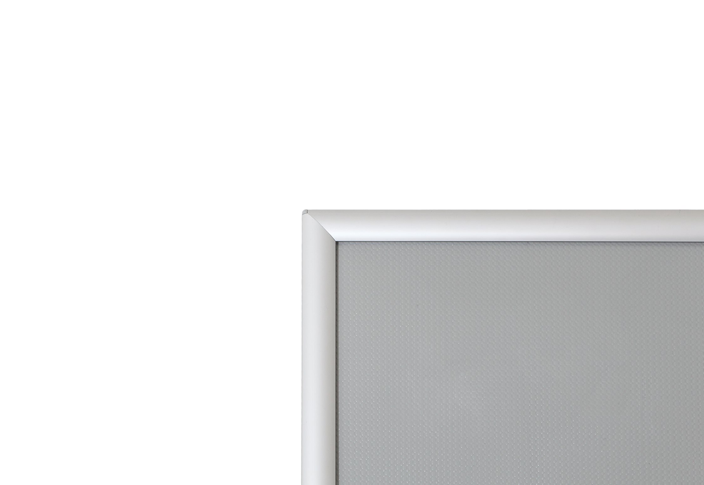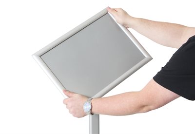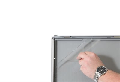 Montert med 25 mm klikkrammer og APET-frontplate med antirefleks som gjør utskiftning av budskapet enkelt.