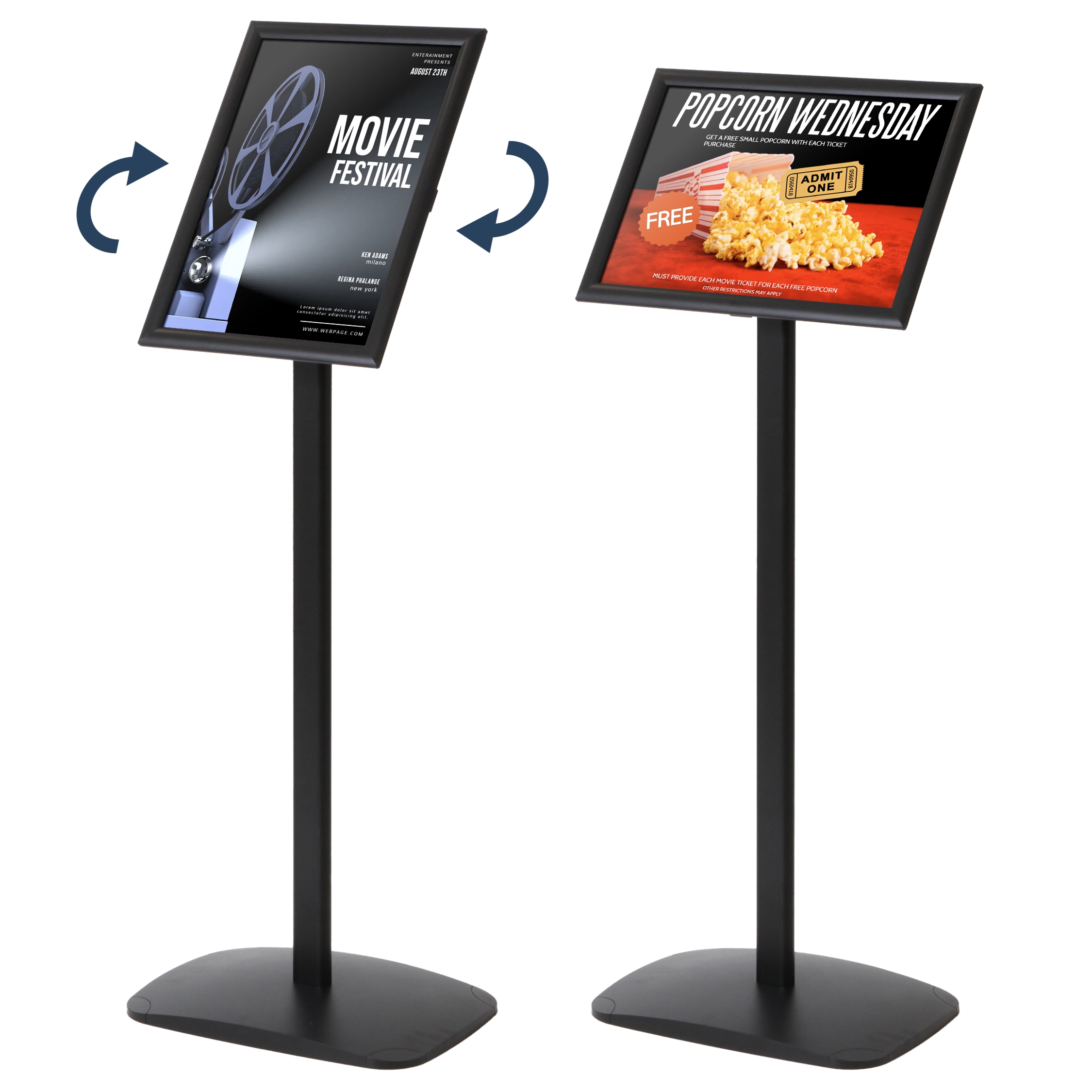 Sort info-/plakatstativ med kraftig fot