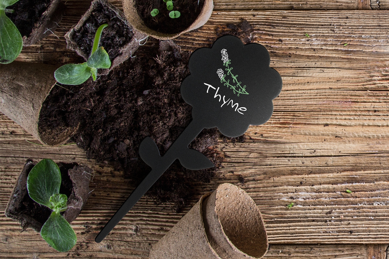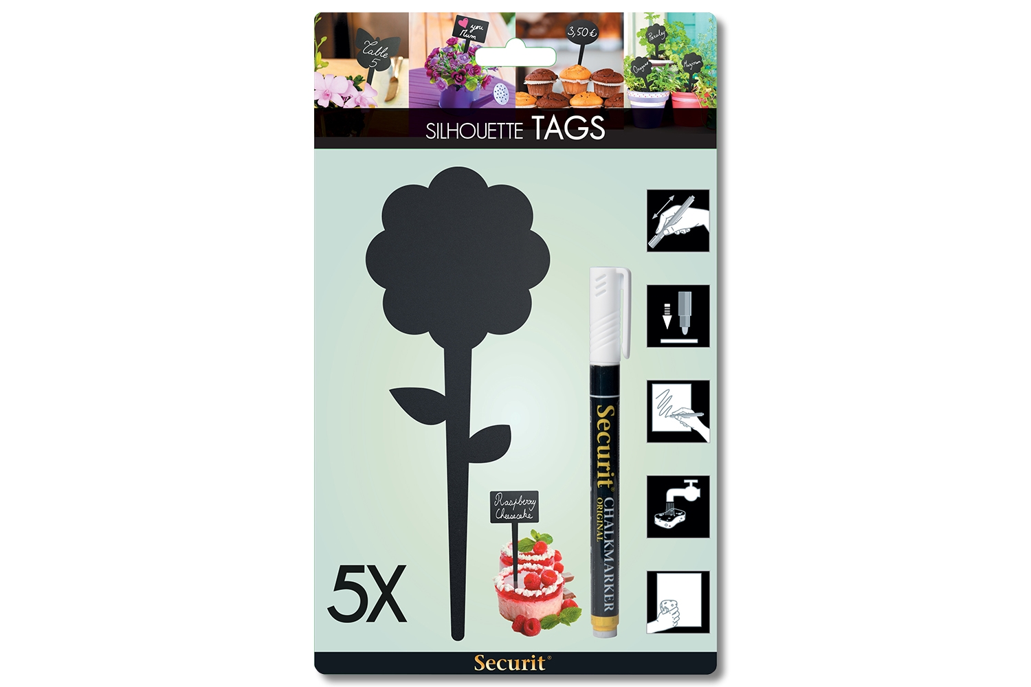 Gi dine produkter en estetisk presentasjon, med disse fine små kritt-tavler spydskilter, i blomst silhuett design og dobbelsidedige skriveoverflater. Pakken inneholder 5 stykk spydskilt, som kan stikkes ned i alle myke overflater. Det følger også en hvit 1-2mm krittmarker penn med.