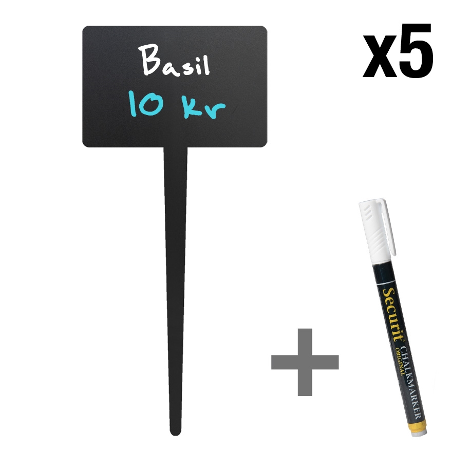 Mini rektangel kritt tavle spydskilt - Pakke med 5 stk