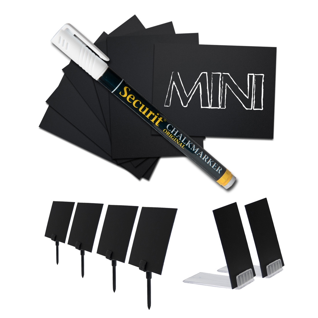 Supersmarte små tavleskilt i plast som kan gjenbrukes igjen og igjen.