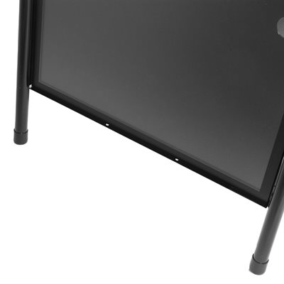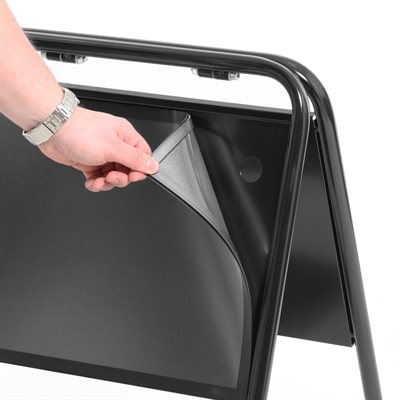 MiniSign finnes i svart og hvitt og leveres med magnetiske svarte frontplater som beskytter plakatene dine mot vind og vær.
