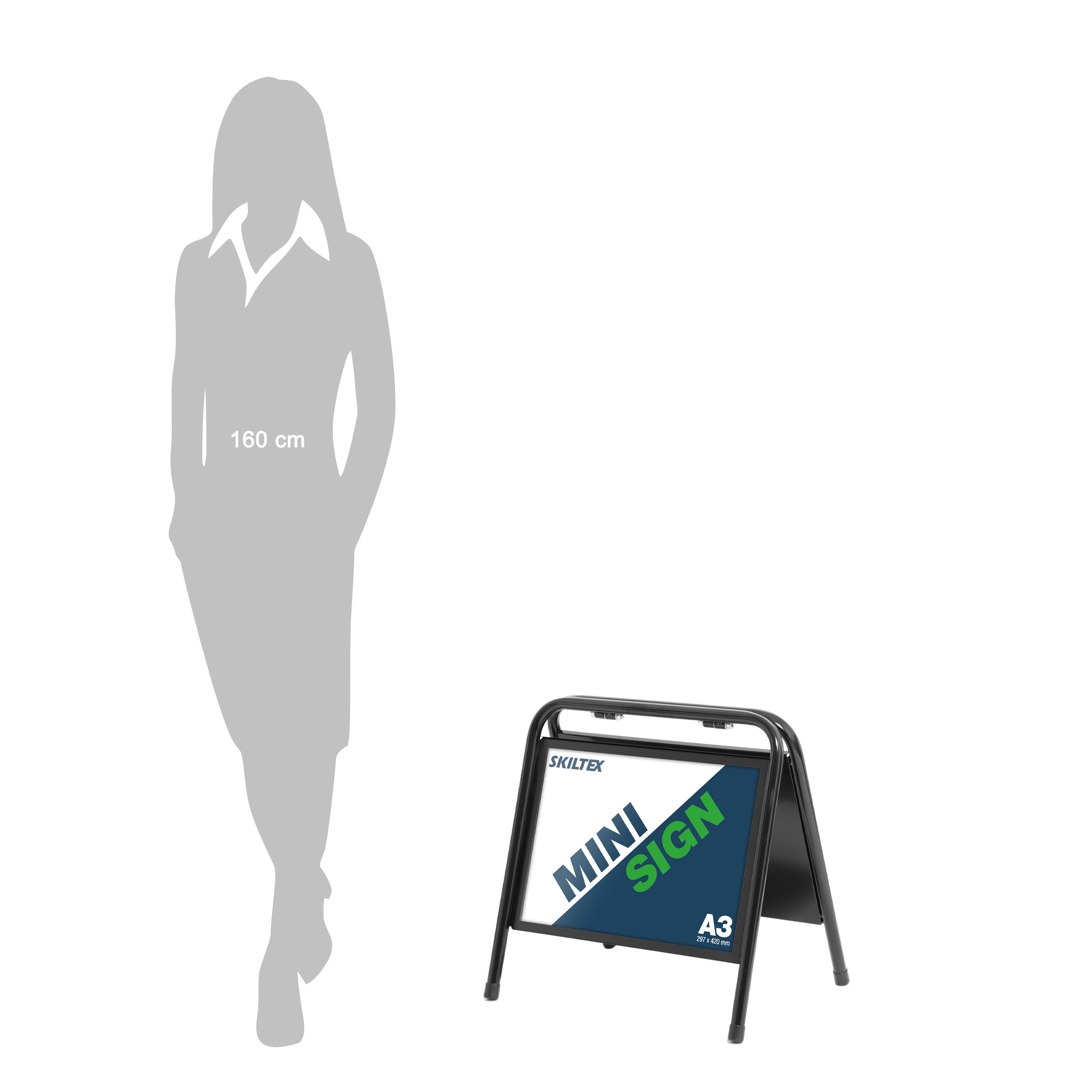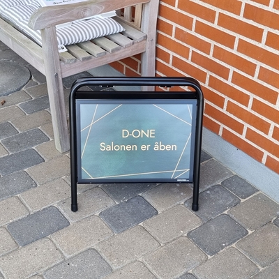 MiniSign A3 gateskilt er meget fleksibel og ideell til bruk som et midlertidig skilt som enkelt kan flyttes rundt. Disse skiltene blir f.eks. brukt av eiendomsmeglere, frisører, mm.