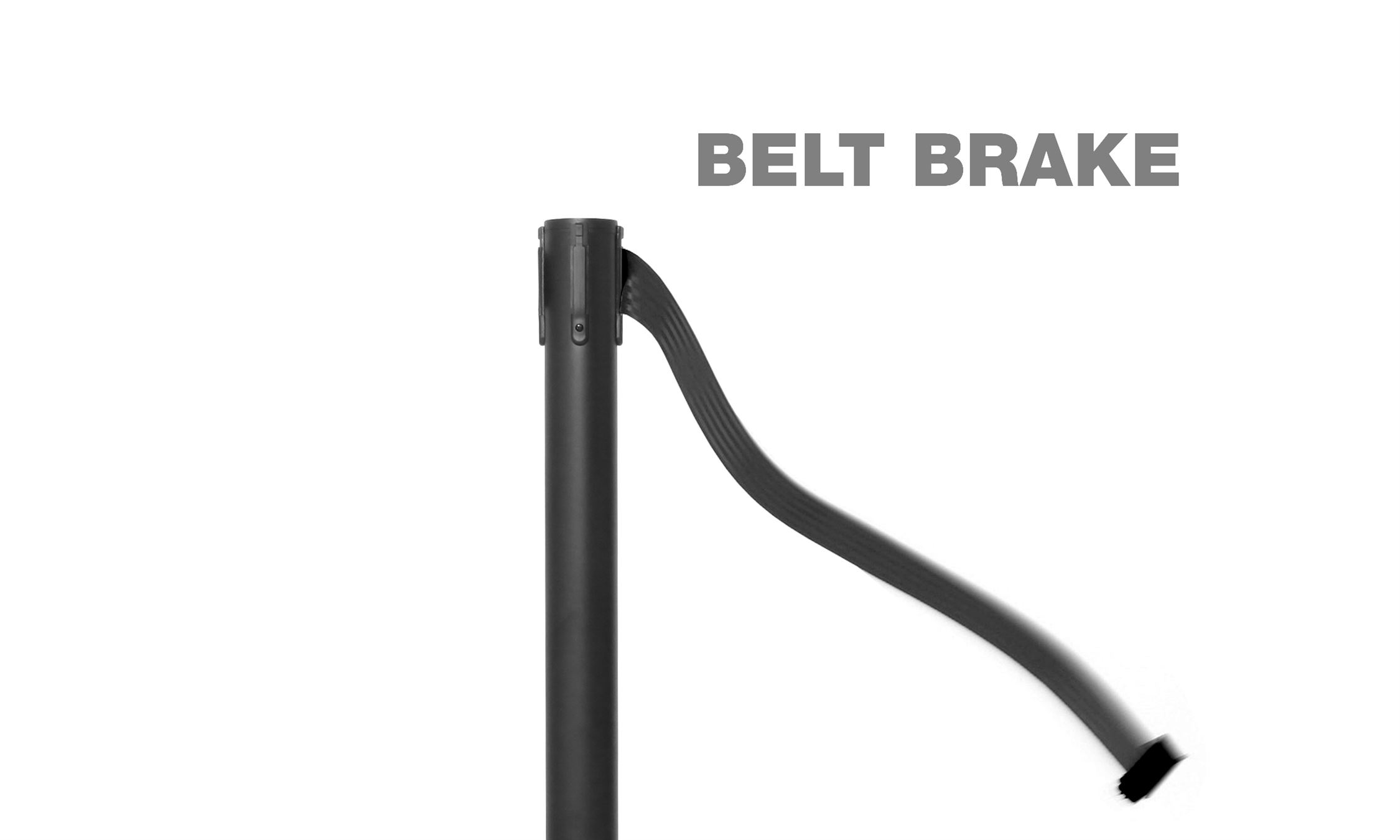 Stolpen er også utstyrt med en sikkerhetsreturfunksjon, slik at båndet ikke ruller ukontrollert tilbake når det slippes. I stedet trekkes det sakte og sikkert tilbake i spolen.