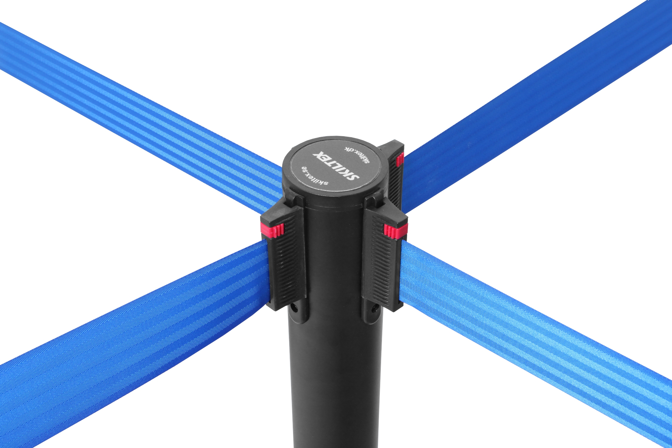 Monterbar Svart avspærringsstolpe med blåt bånd
