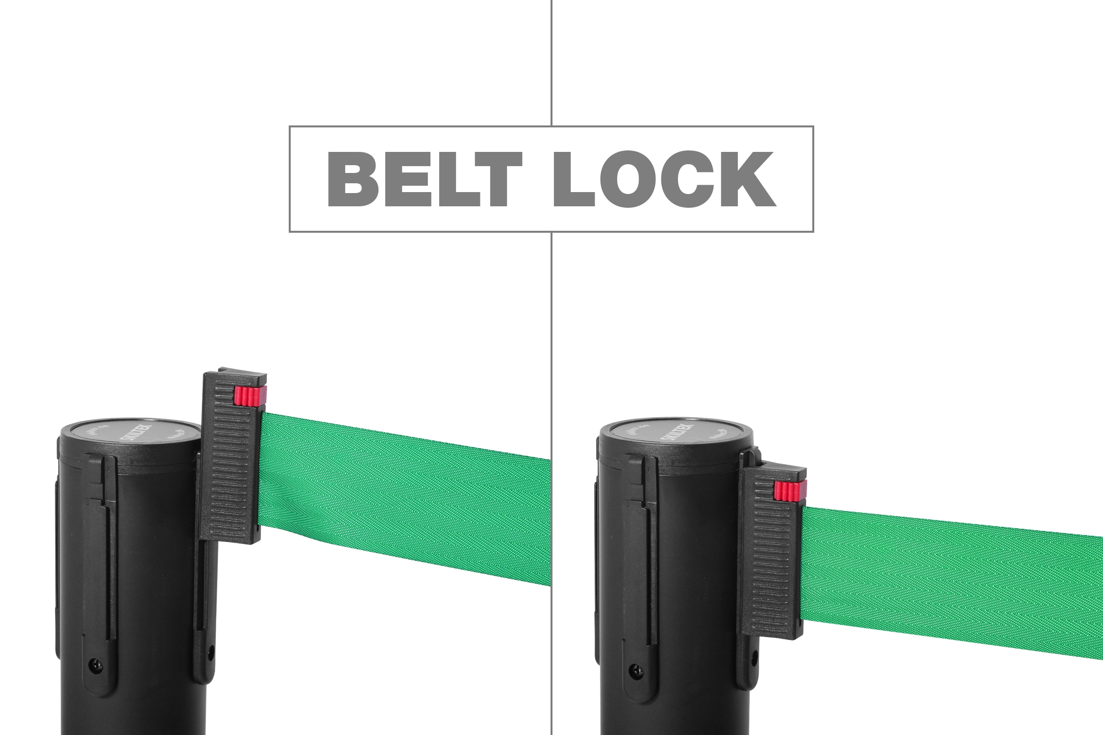 Båndet har et innebygd låsesystem som sikrer at det sitter fast i neste stolpe. Vårt universelle låsesystem er kompatibelt med andre kjente merker - og garanterer maksimal fleksibilitet ved montering.