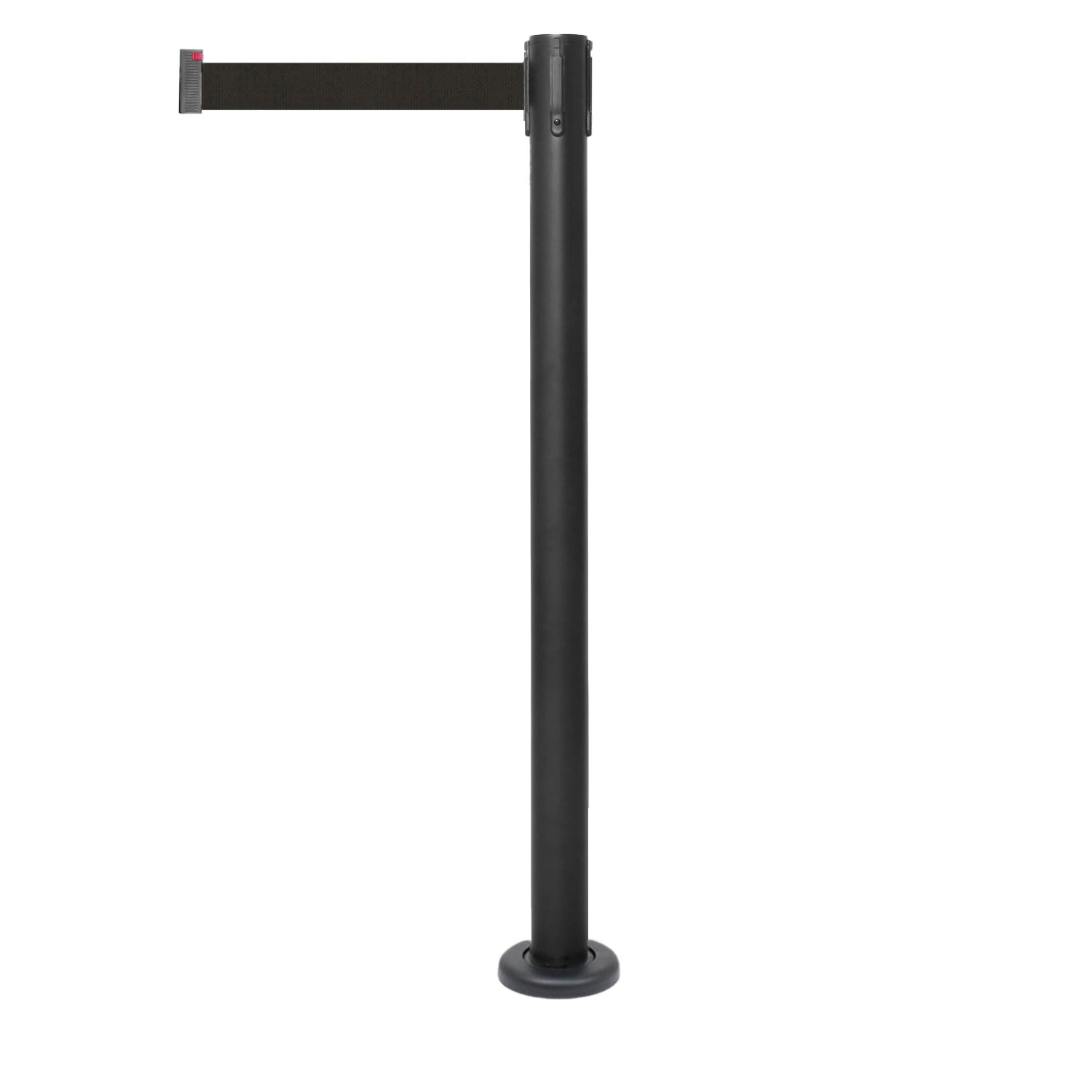 Profesjonelle svarte avspærringsstolper, laget av galvanisert stål med integrerte, boltmonterbare føtter – designet for fast montering på gulv. Dekkeplater til føttene følger med og gir et pent og ferdig utseende etter montering.