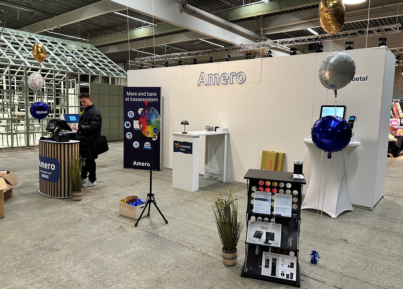 Smart sammentrekkbar counter / disk, med plass til 6xA4 brosjyrer, som er lett at trekke sammen og stille opp.