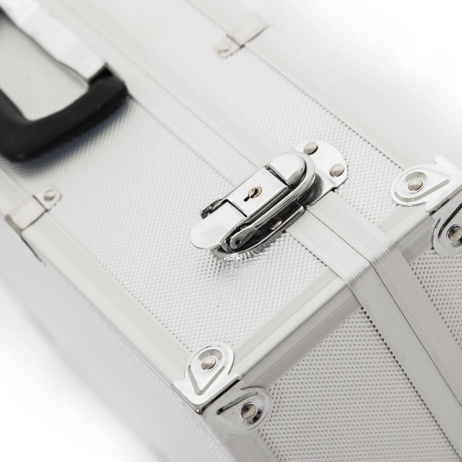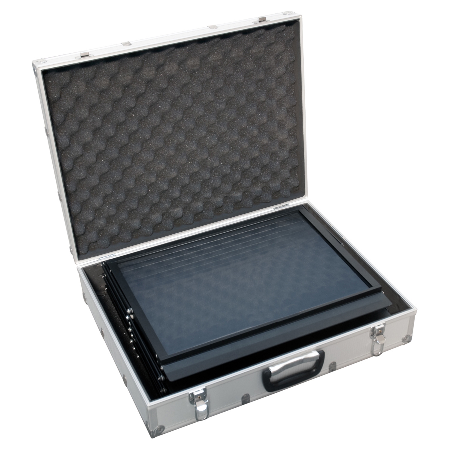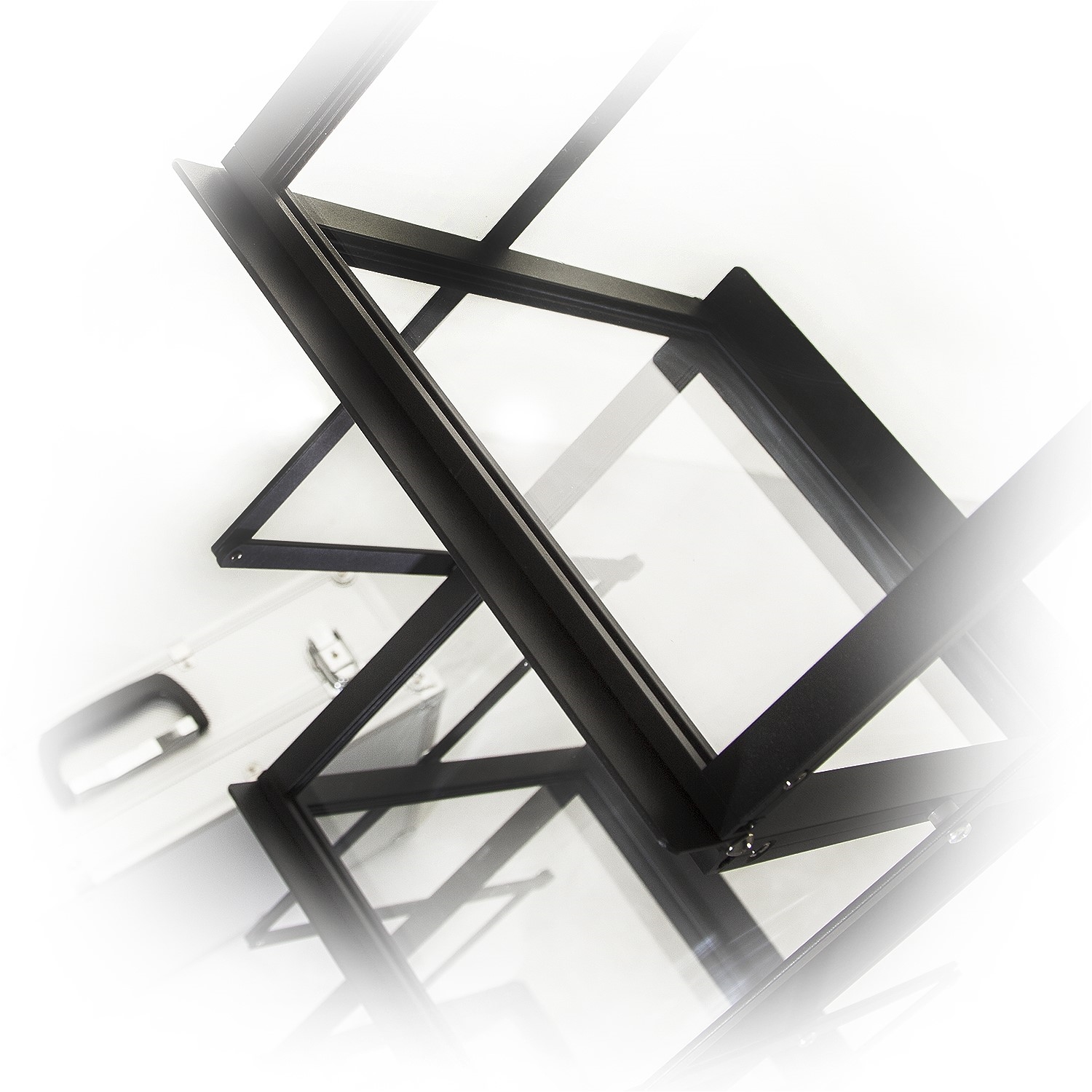 Sammentrekkbar brosjyrestativ som er perfekt egnet til messe og event. Brosjyrestativ leveres med en kraftig og robust alu koffert som beskytter atativ under transport.
