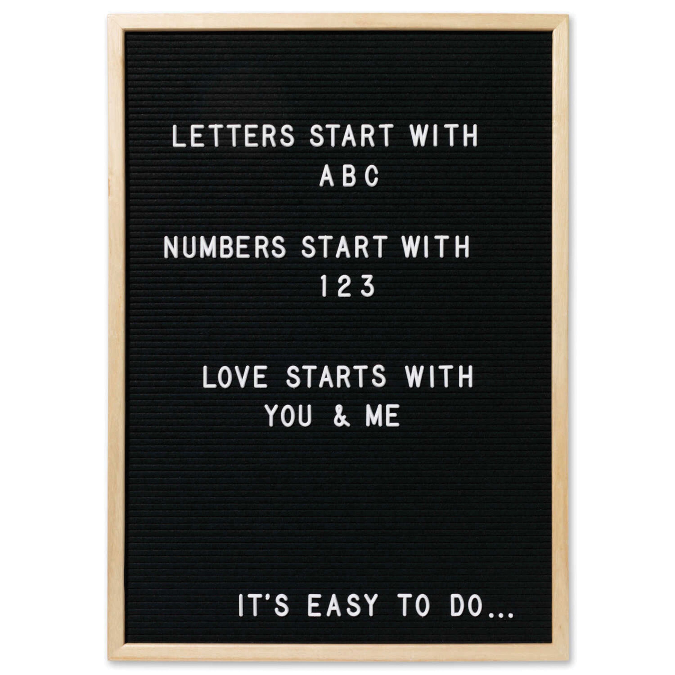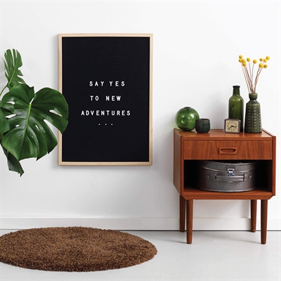 Gi hjemmet, kontoret eller butikken din et personlig preg med denne stilrene og funksjonelle bokstavtavlen. Tavlen har sort filt og ramme i lyst, massivt Paulownia-tre - også kjent som keisertre, som gir et moderne og elegant uttrykk.