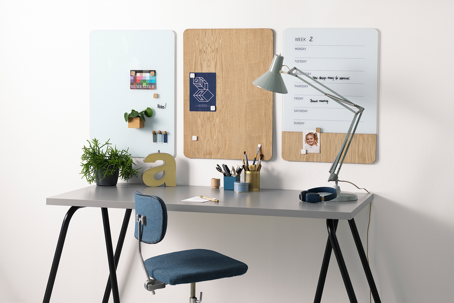 En praktisk tavle som både kan monteres i høy- og bredformat! Det kan settes papir, kalender, notater, bilder, og andre dekorasjoner på tavlen med magneter, via dens magnetiske bakplate. Skruer og rawplugs til veggmontering følger med.