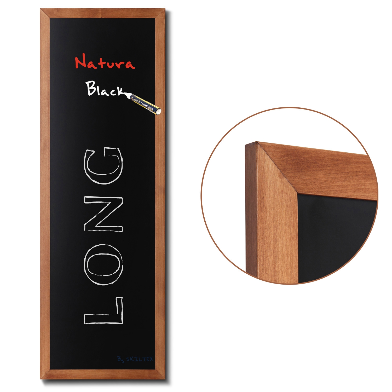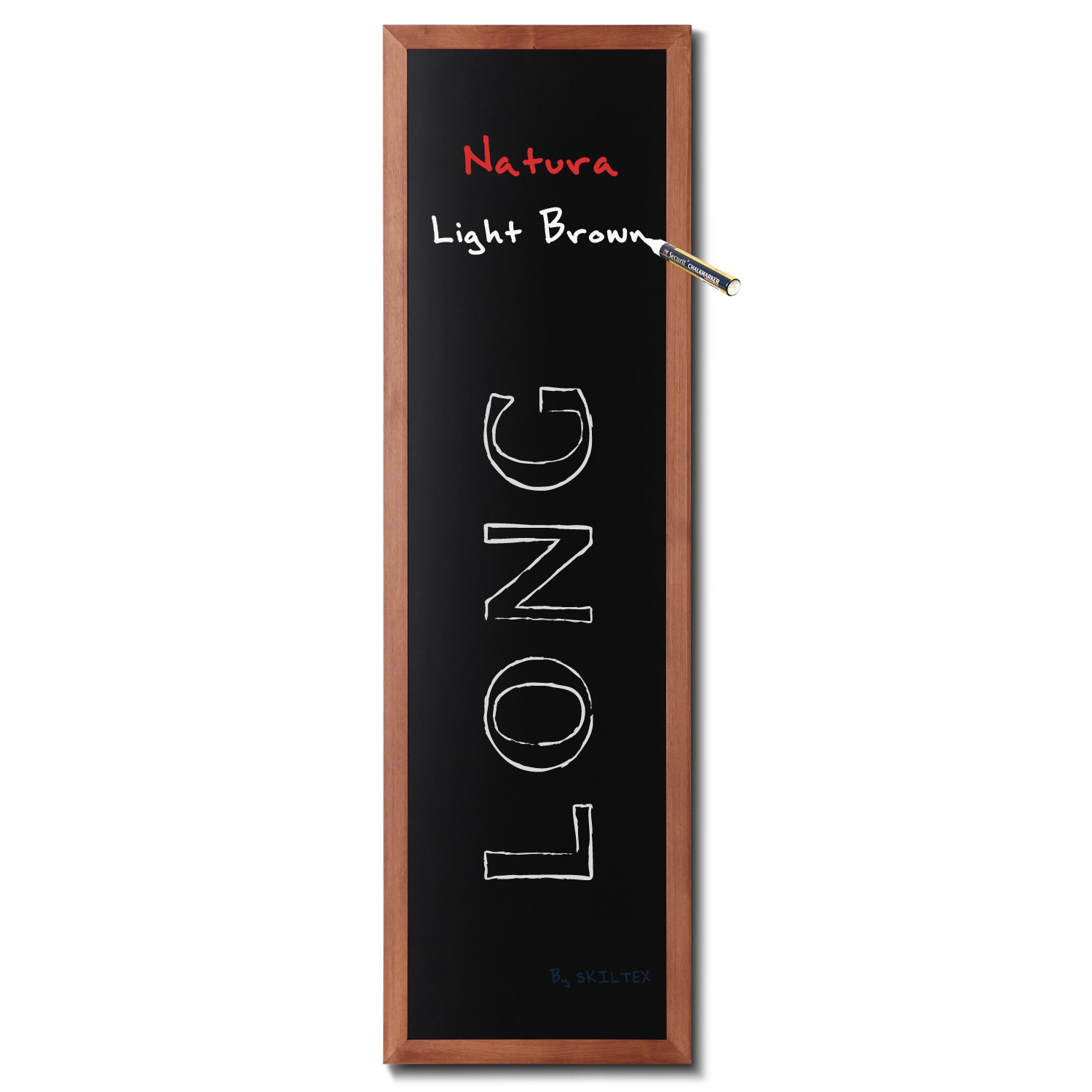 Robust kritt tavle til vegg med flott 40mm lysebrun tre profil, som både kan brukes inne- og utendørs. Brukes fx. på caféer, restauranter, puber, m.v.