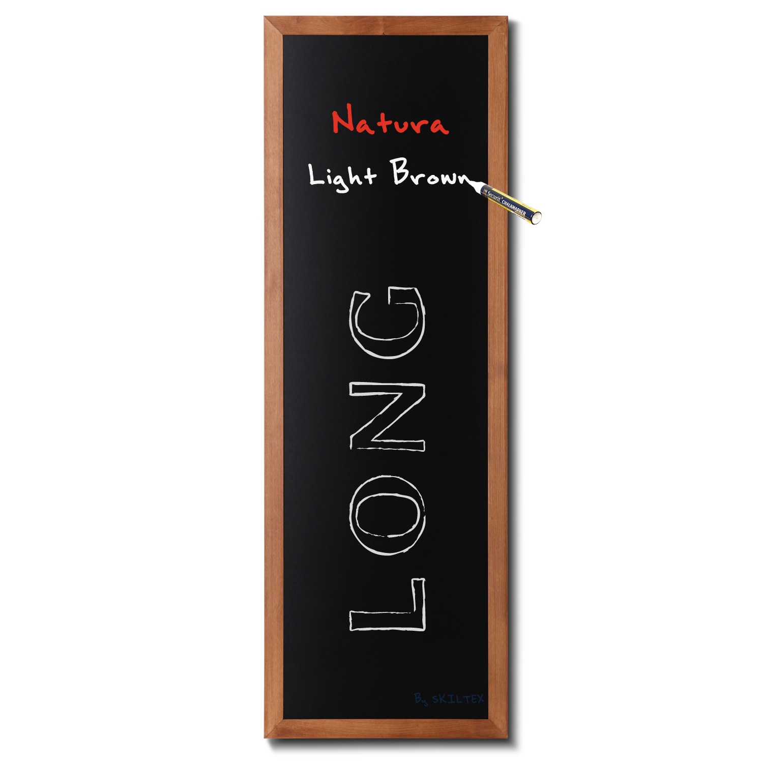 Robust kritt tavle til vegg med flott 40mm lysebrun tre profil, som både kan brukes inne- og utendørs. Brukes fx. på caféer, restauranter, puber, m.v.