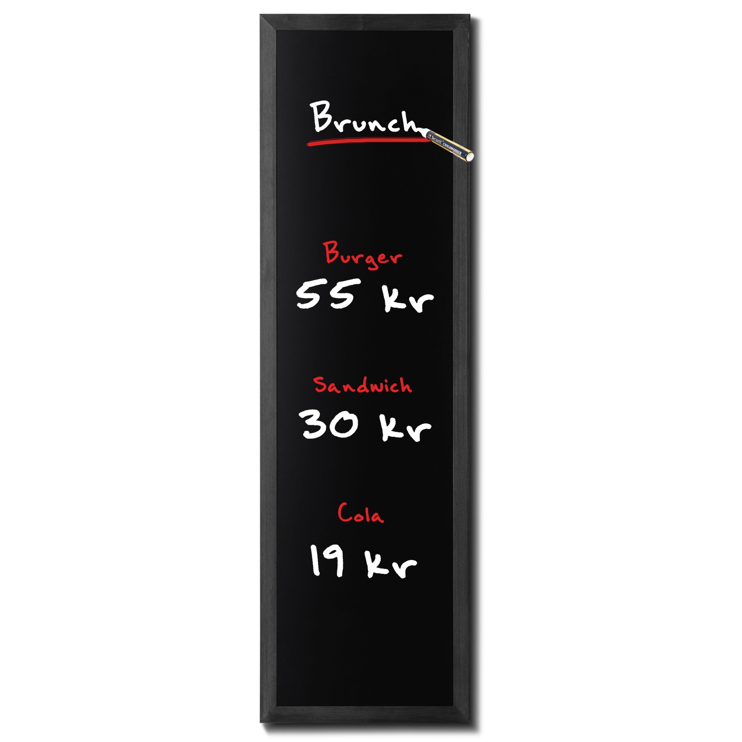 Robust kritt-tavle til veg med flott 40mm sort tre profil, som både kan brukes inne- og utendørs.