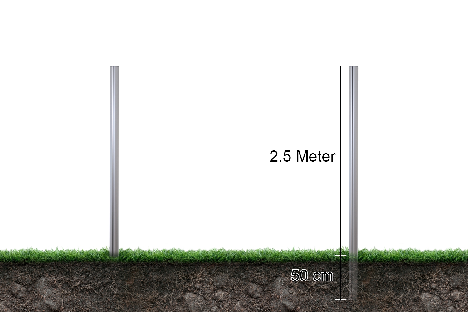 Set med 2 stk Nedgravningsstolper til Premium outdoor oppslagsskap. Stolpene er 2.5 m lange, og graves 50 cm ned i jorden, deretter senkes oppslagsskapet ned og settes fast via monteringshengslene påbaksiden.