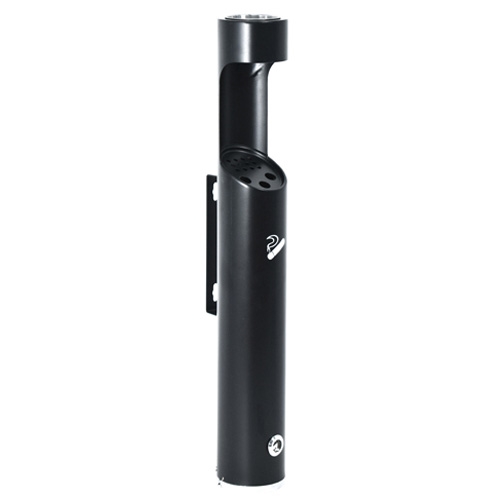 Praktisk askebeger til vegg montering laget i stål med pulverlakkert matt svart finish.