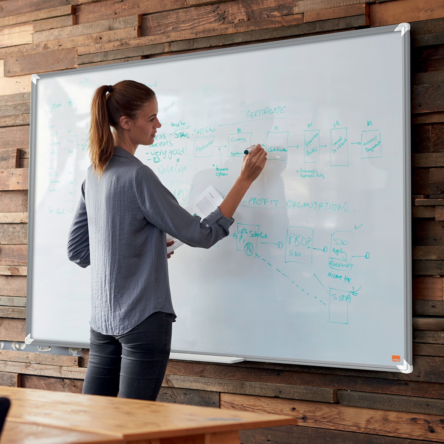 Widescreen-format gir en mere tilgjengelig og ekspansiv skriveoverflate sammenlignet med tradisjonelle whiteboards, hvor plass i topp og bunn ikke brukes.