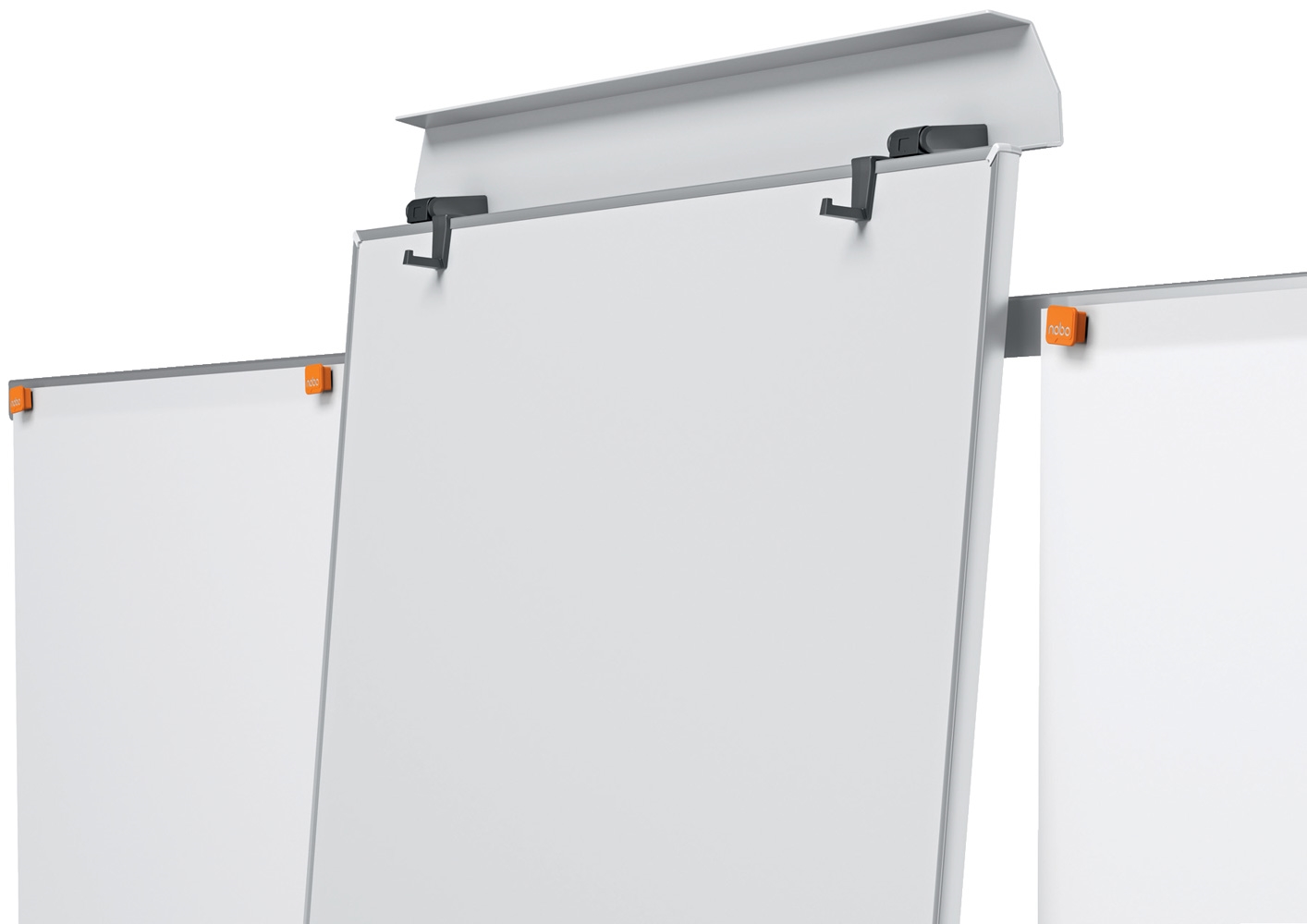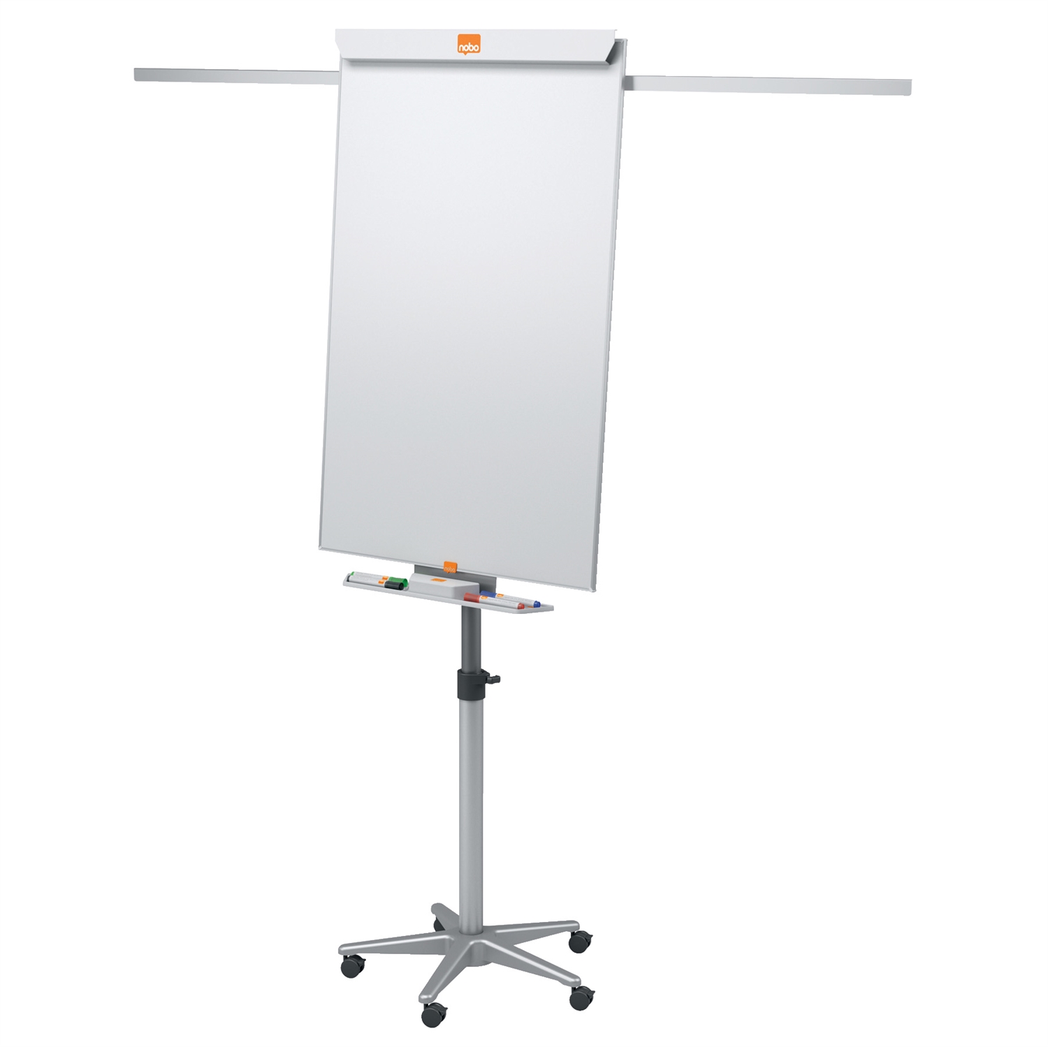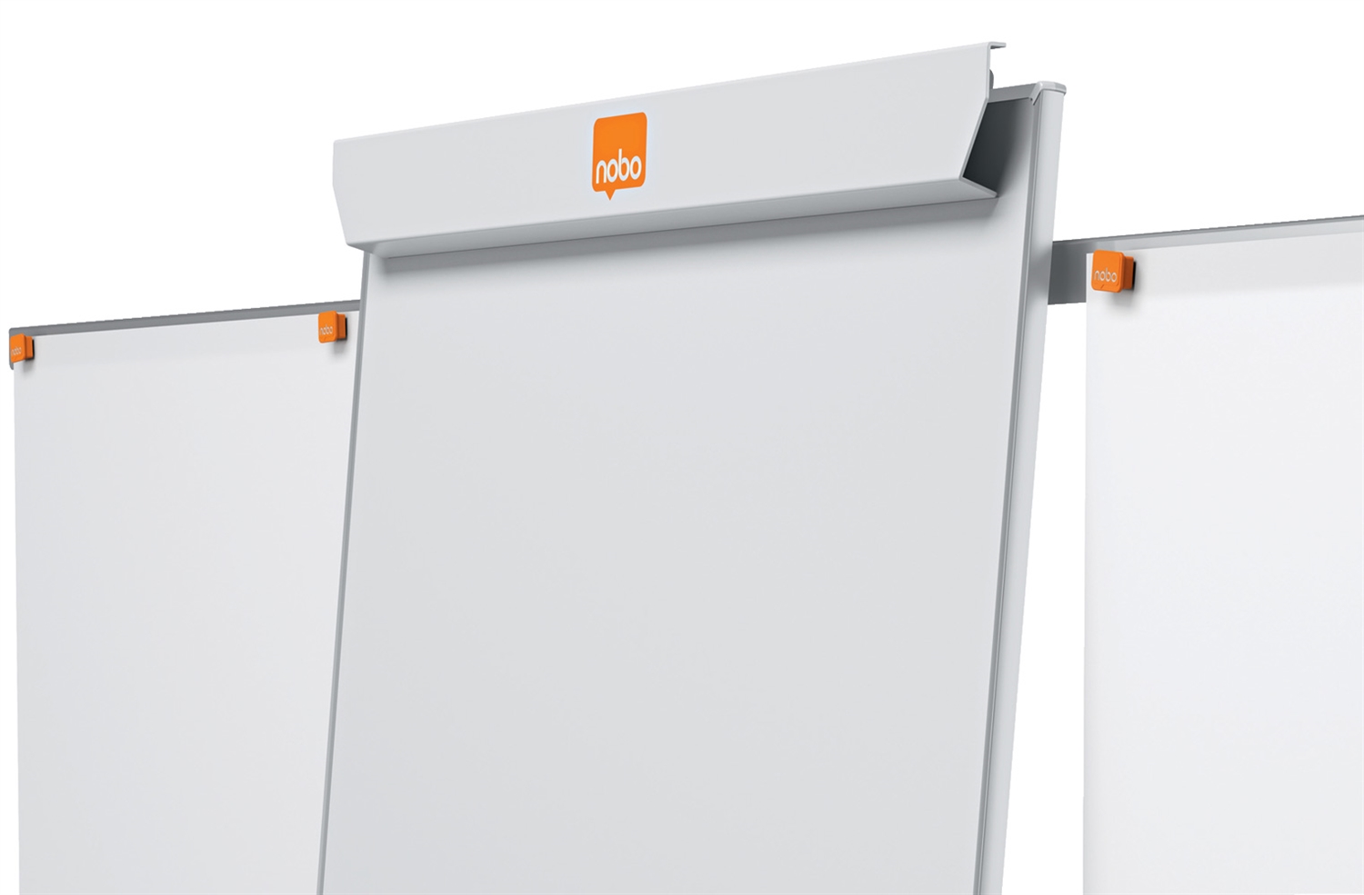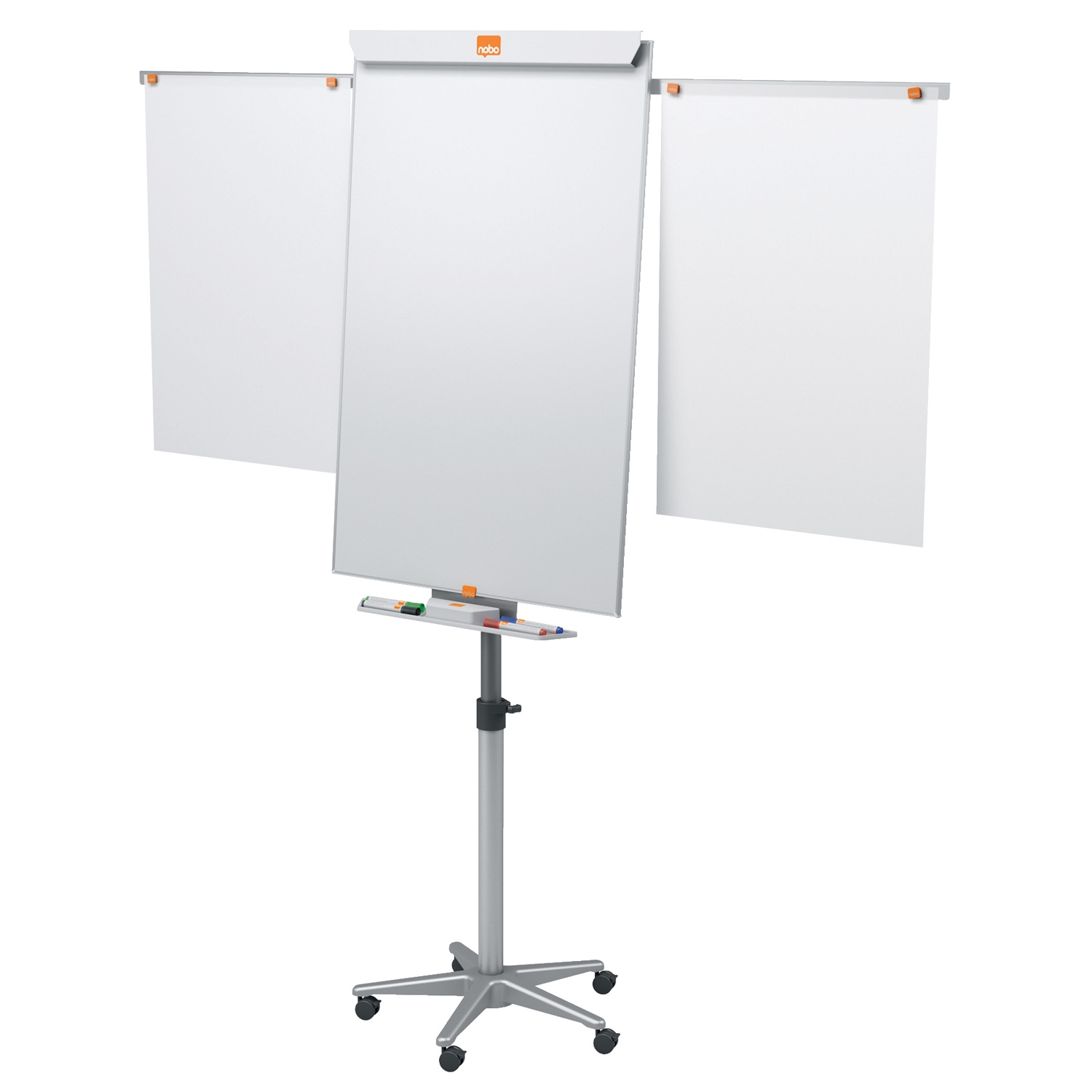 Nobo Classic mobil flipover med magnetisk whiteboard overflate i lakkert stål og forlengerarmer for at vise 3 sider samtidig.