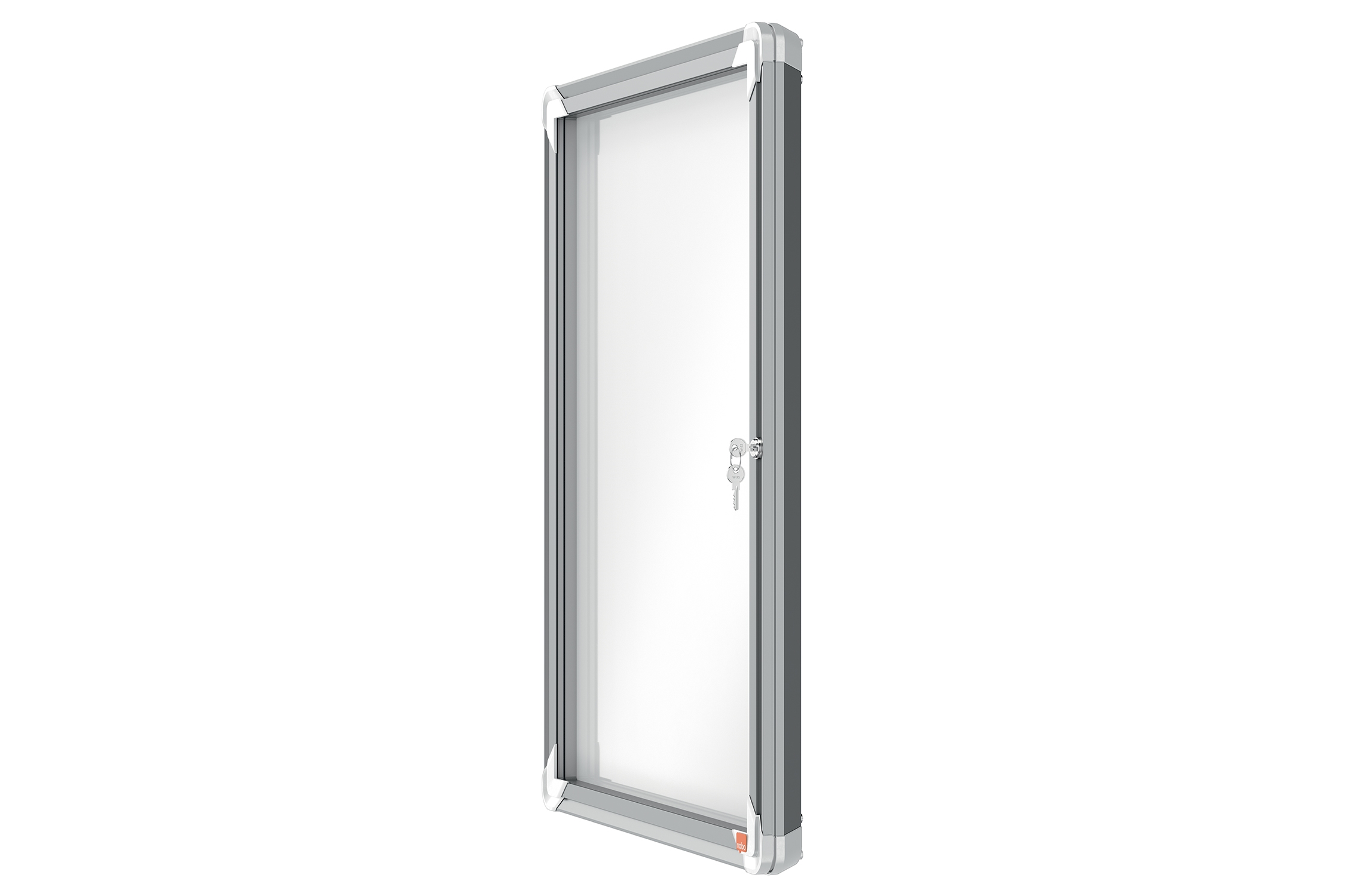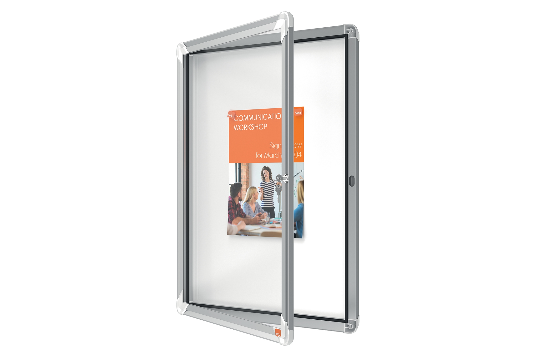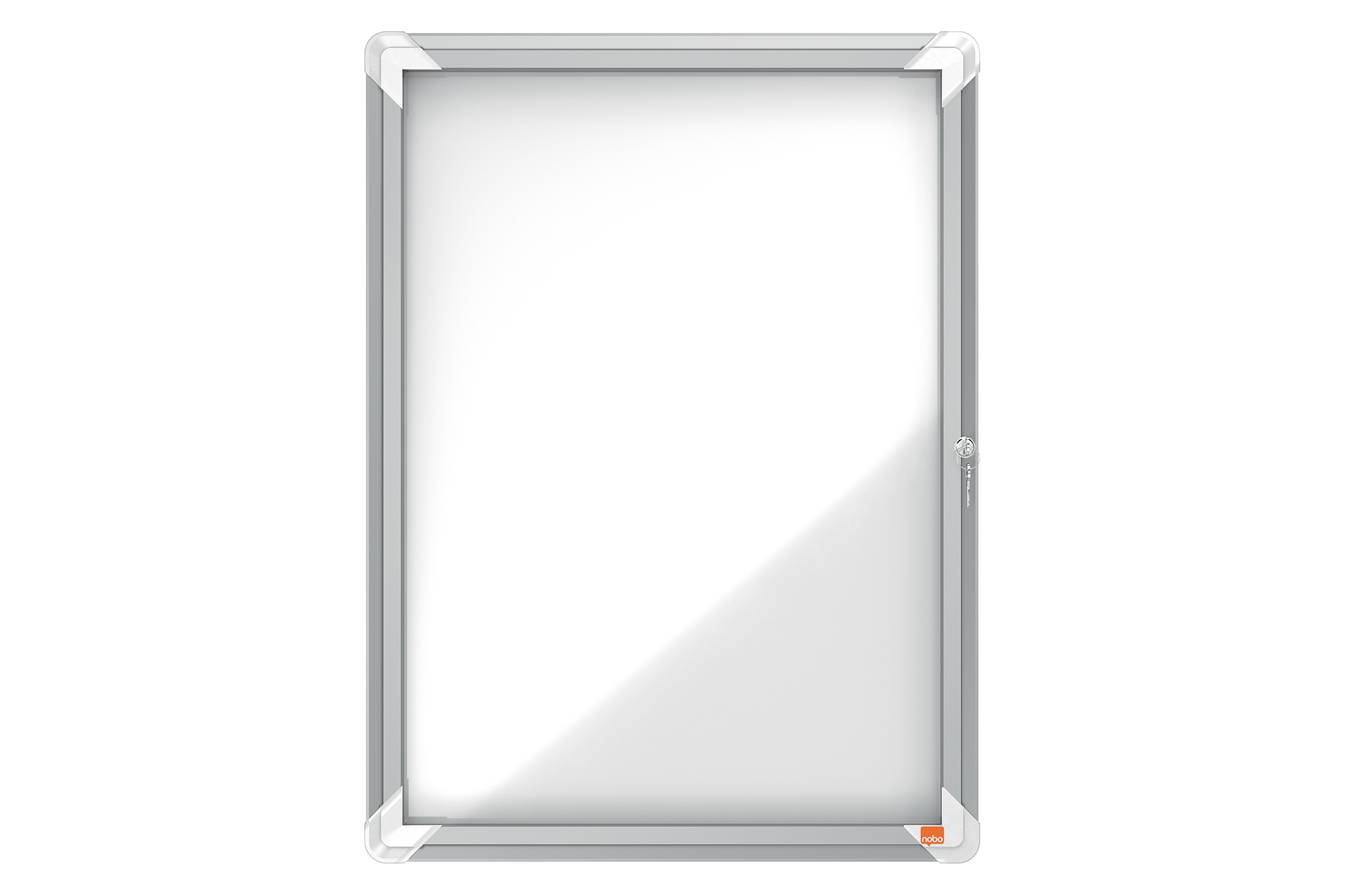 Den låsbare hengslede sikkerhets glassluke som beskytter whiteboard overflaten på oppslagsskapet sikrer samtidig at dine oppslag ikke stjeles eller manipuleres.