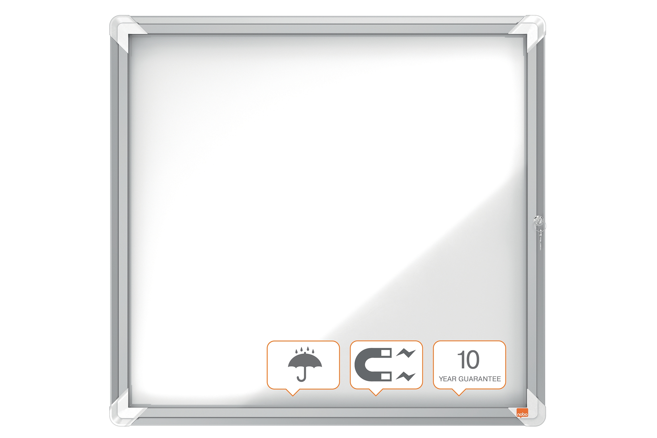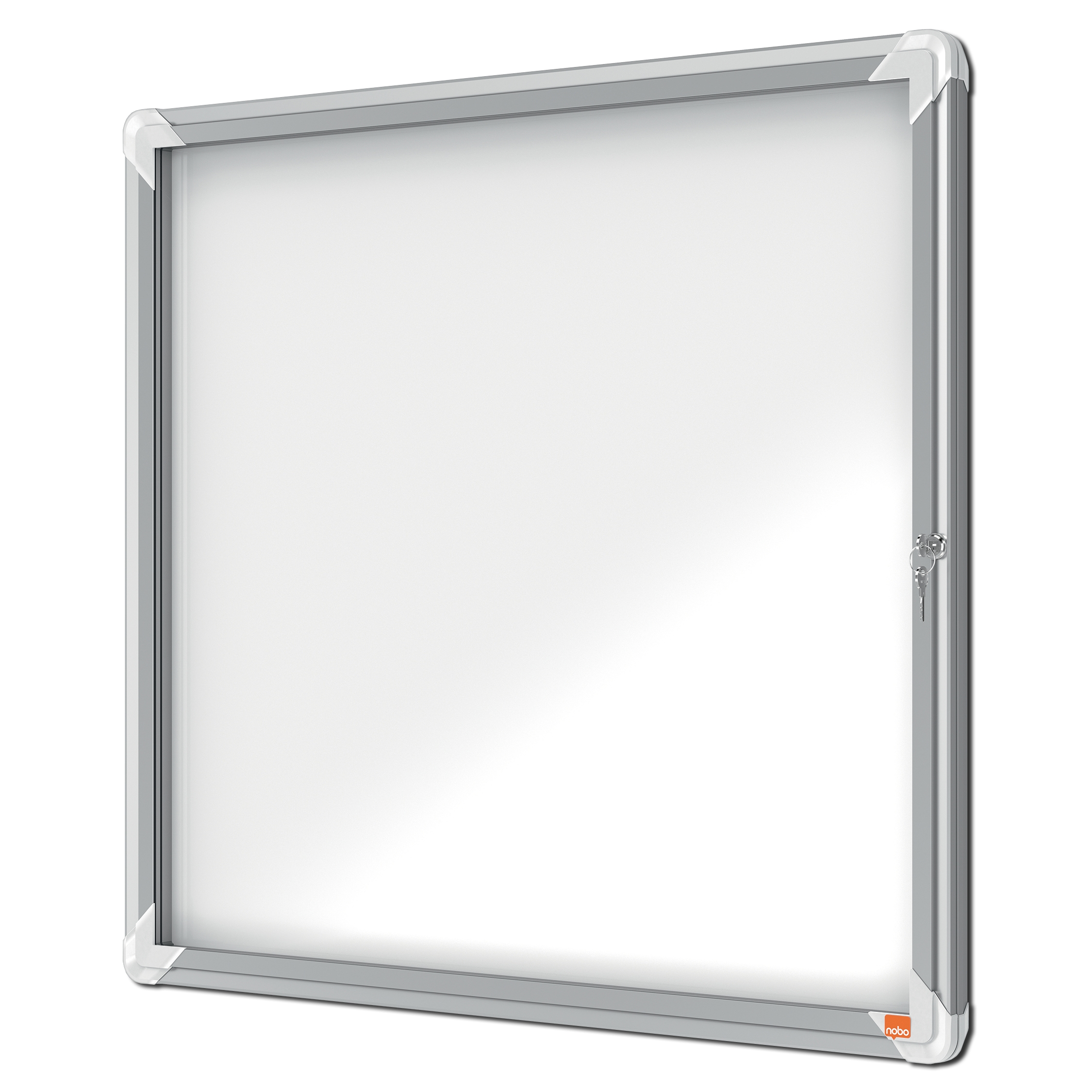 Den låsbare hengslede sikkerhets glassluke som beskytter whiteboard overflaten på oppslagsskapet sikrer samtidig at dine oppslag ikke stjeles eller manipuleres.