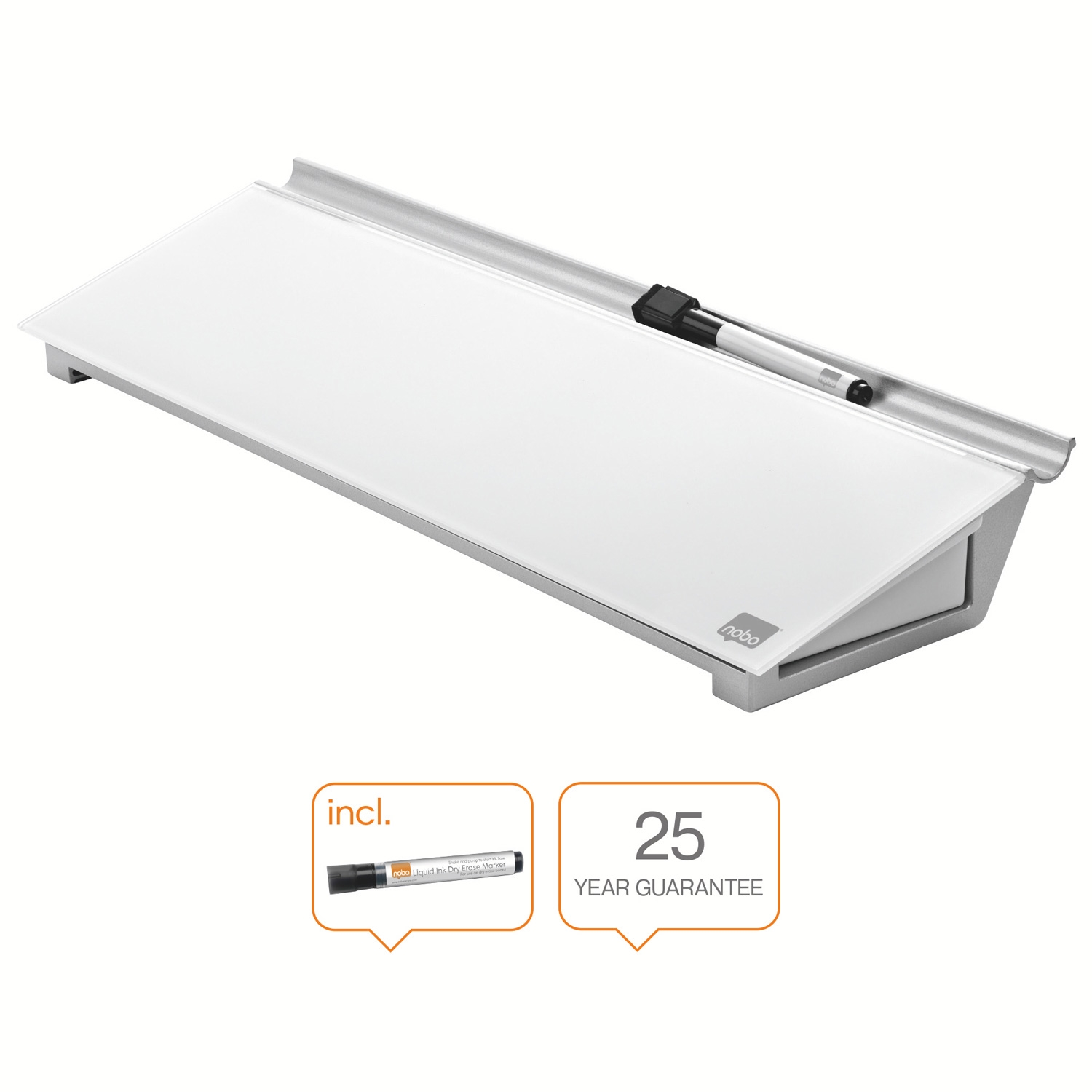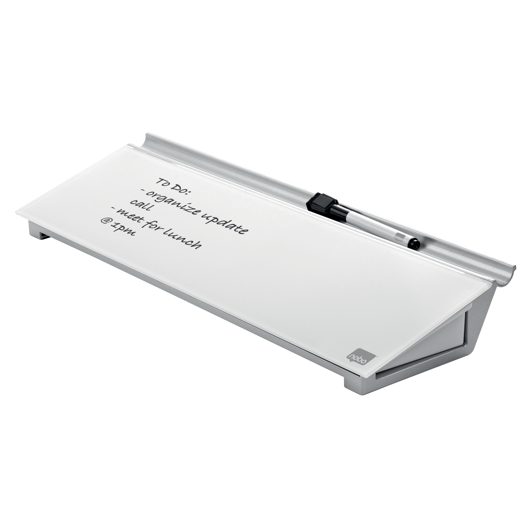 En ny og smart skrivebords glasstavle fra Nobo med stilfullt design og dry wipe overflate gir et utmerket notat tager verktøy.