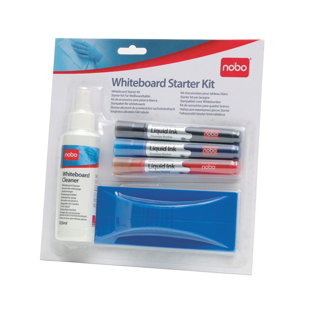 Et komplett starterset med alt det tilbehør du trenger for at starte med din Nobo Dry Wipe whiteboardtavle
