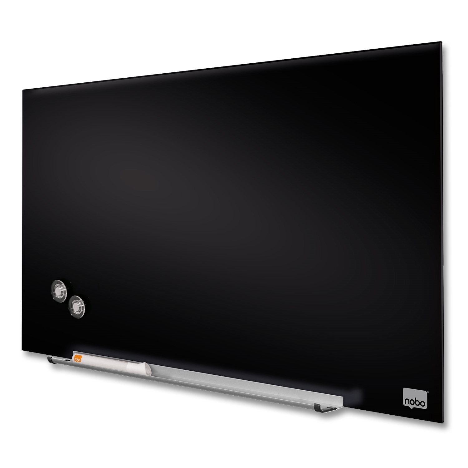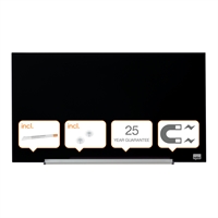 Flott svart glasstavle i stilfullt, moderne rammeløst design fra Nobo som maksimerer skriveplassen på glasstavlen