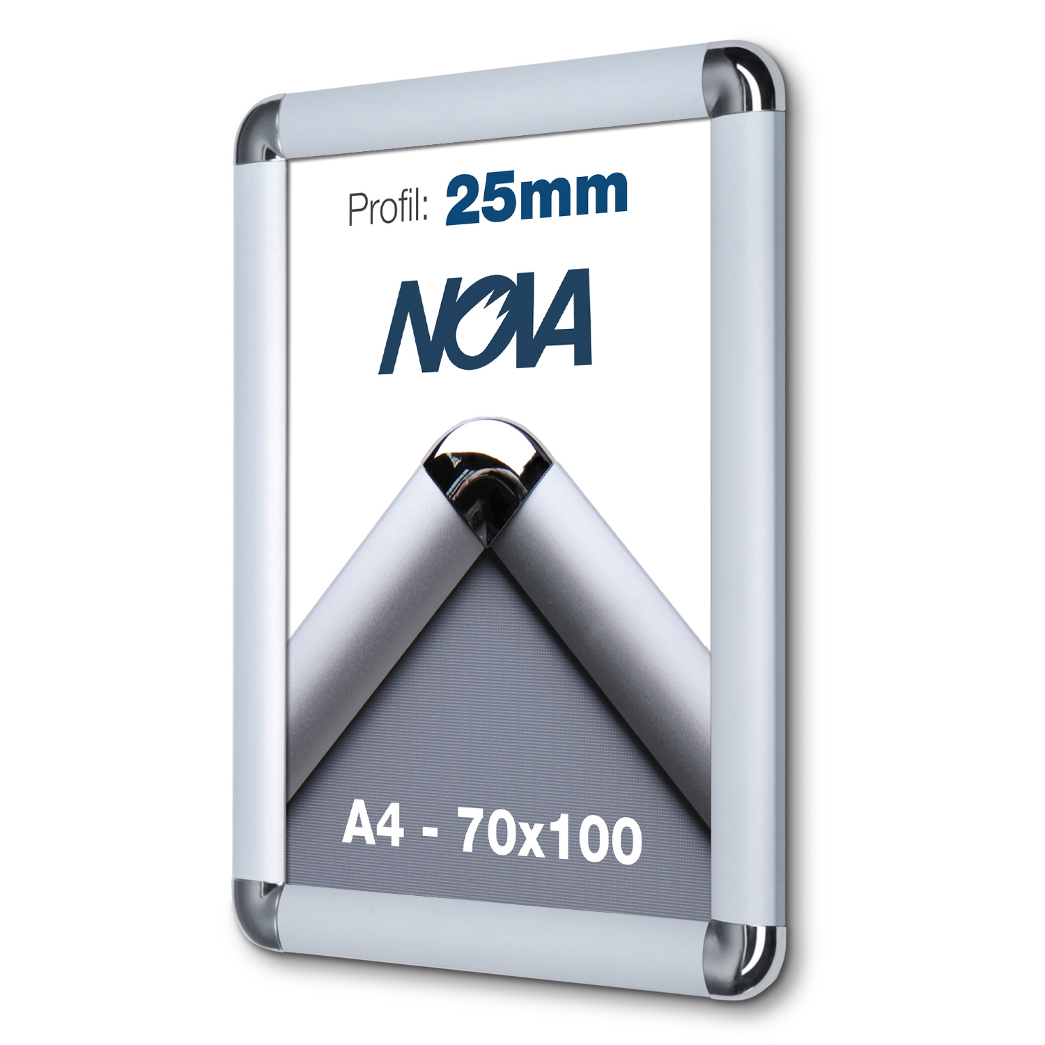 Våre Nova klikkrammer er utstyrt med 25 mm avrundingsprofil og pene forkrommede runde hjørner.