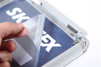Frontprofilen er laget av sølvanodisert aluminium og er 25 mm i bredden. Profilen er avrundet og avsluttes med et lite håndtak, noe som gjør at rammene er svært enkle å åpne, og derfor er det også veldig enkelt og raskt å bytte boksen innvendig.