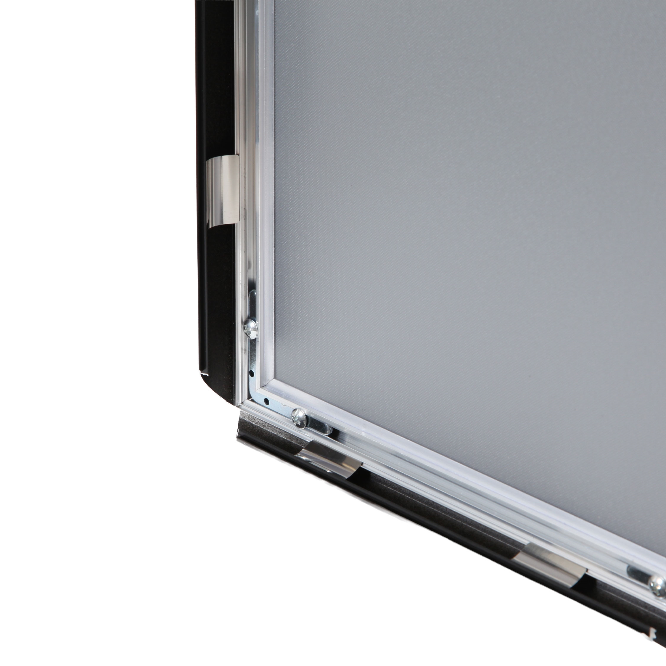 Klikkrammer i aluminium med en slitesterk, pulverlakkert finish i RAL-9005 sort - lagerført i den populære A4-rammestørrelsen samt alle de andre populære størrelsene.