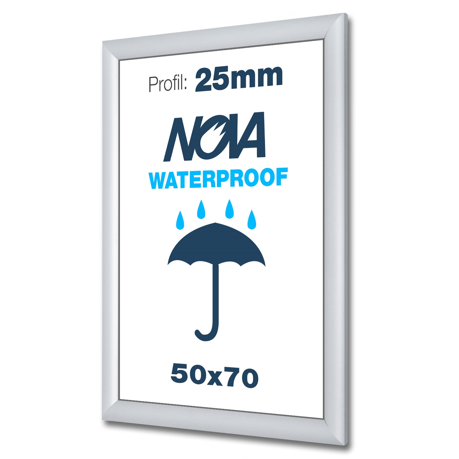 Nova vannsikre rammer er designet for utendørs bruk og er montert med en svart skumlist som beskytter plakatene dine mot været. Disse rammene er litt større enn vanlige klikkrammer og kan derfor også monteres med laminerte plakater.