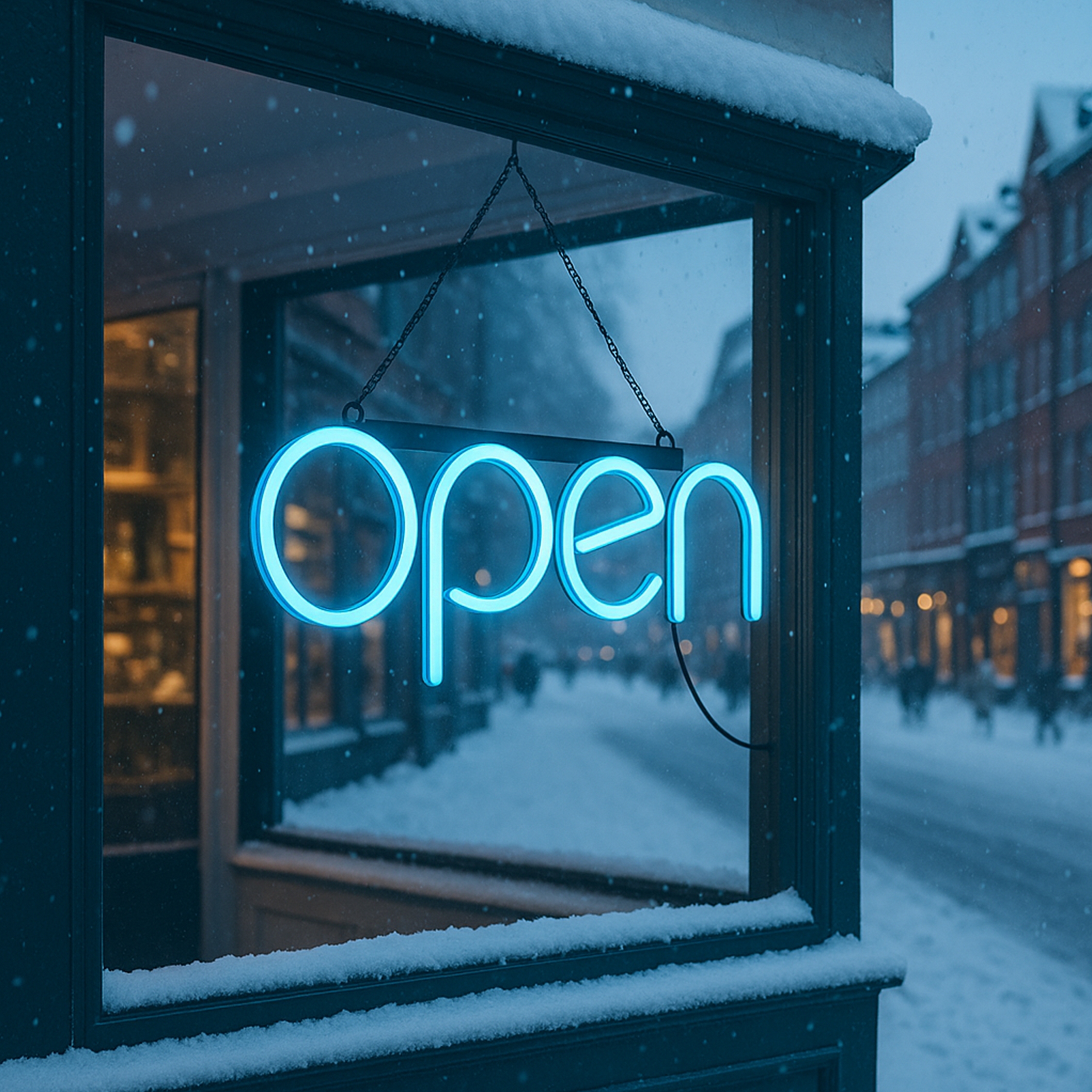 Tiltrekk flere kunder og se din virksomhet vokse med våres OPEN LED Neonskilt. Skap oppmerksomhet og vis alle rundt dere at dere er åpne for business! Våres skarpe og iøyefallende isblå LED skilt vil bringe flere kunder gjennom deres dør. Fargerikt og skinnende LED lys.