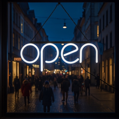 Tiltrekk flere kunder og se din virksomhet vokse med våres OPEN LED Neonskilt. Skap oppmerksomhet og vis alle rundt dere at dere er åpne for business! Våres skarpe og iøyefallende isblå LED skilt vil bringe flere kunder gjennom deres dør. Fargerikt og skinnende LED lys.