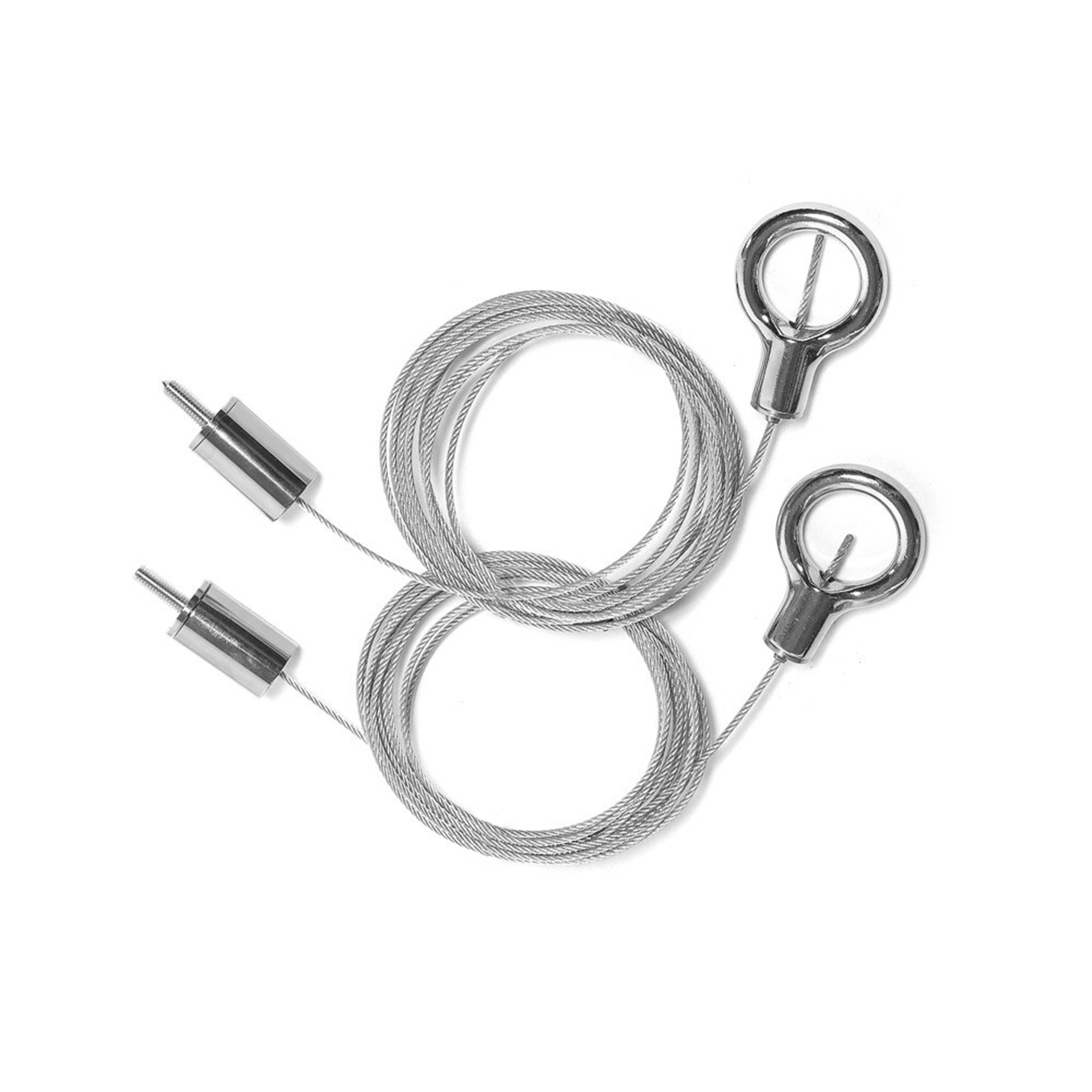 Settet inneholder 1 unbrako nøkkel, 2 stk rustfri stålwire (2mm) med en maks lengde på 3 meter. 2 stk oppheng tråd som gir mulighet for høyderegulering ved hjelp av den inkluderte unbrako nøkeln, og 2 stk opphengsbeslag til sikker fastgjørelse.
