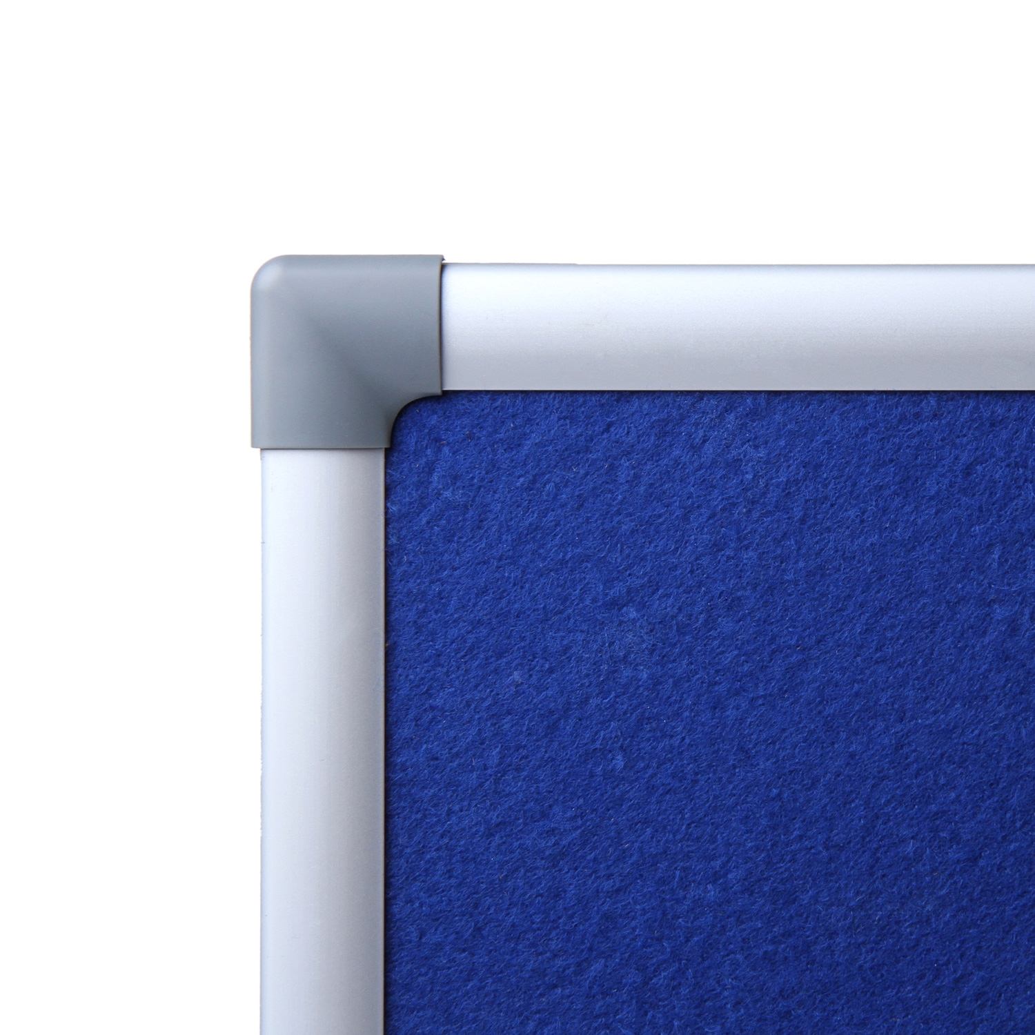 Overflaten på oppslagstavlen er laget av stoff og kan brukes til å henge opp ulike visuelle materialer, som bilder, dokumenter, visittkort og notater både på kontoret og hjemme. Rammen har stilige avrundede hjørner og kan brukes både vertikalt og horisontalt. Skruehull er dekket av sikkerhetshjørner, noe som gir et pent utseende og samtidig er svært brukervennlig. Brettet er slitesterkt og lett å vedlikeholde.