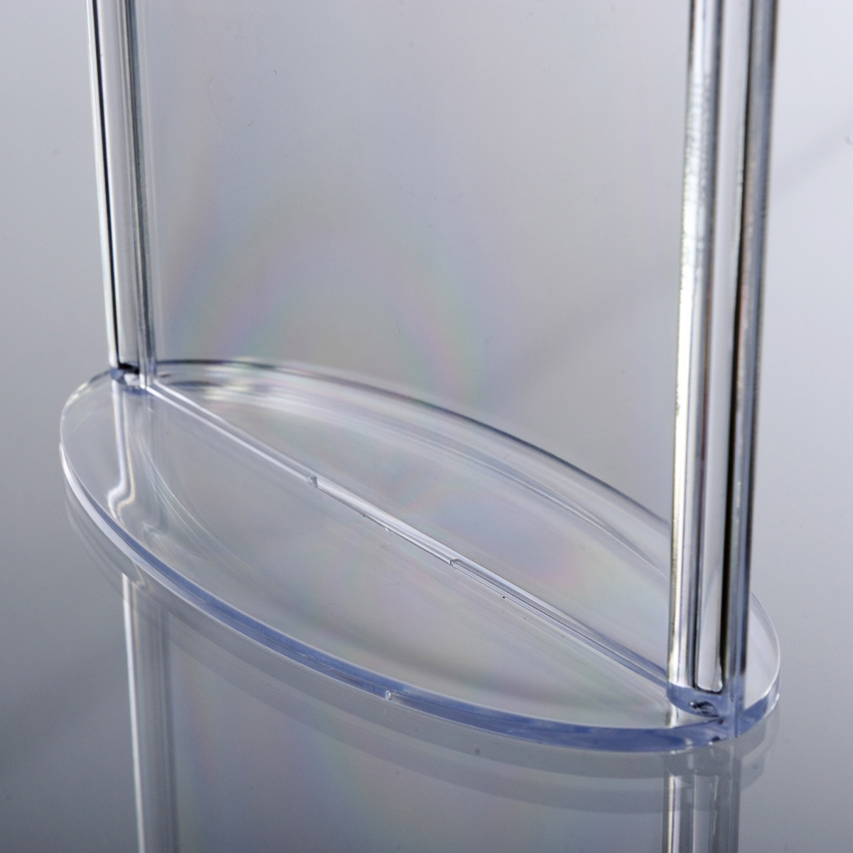 Menyholderens mye stilrene, ovale fot er laget av 4mm tykk akryl og gjør den både mye stabil og ekstremt holdbar.