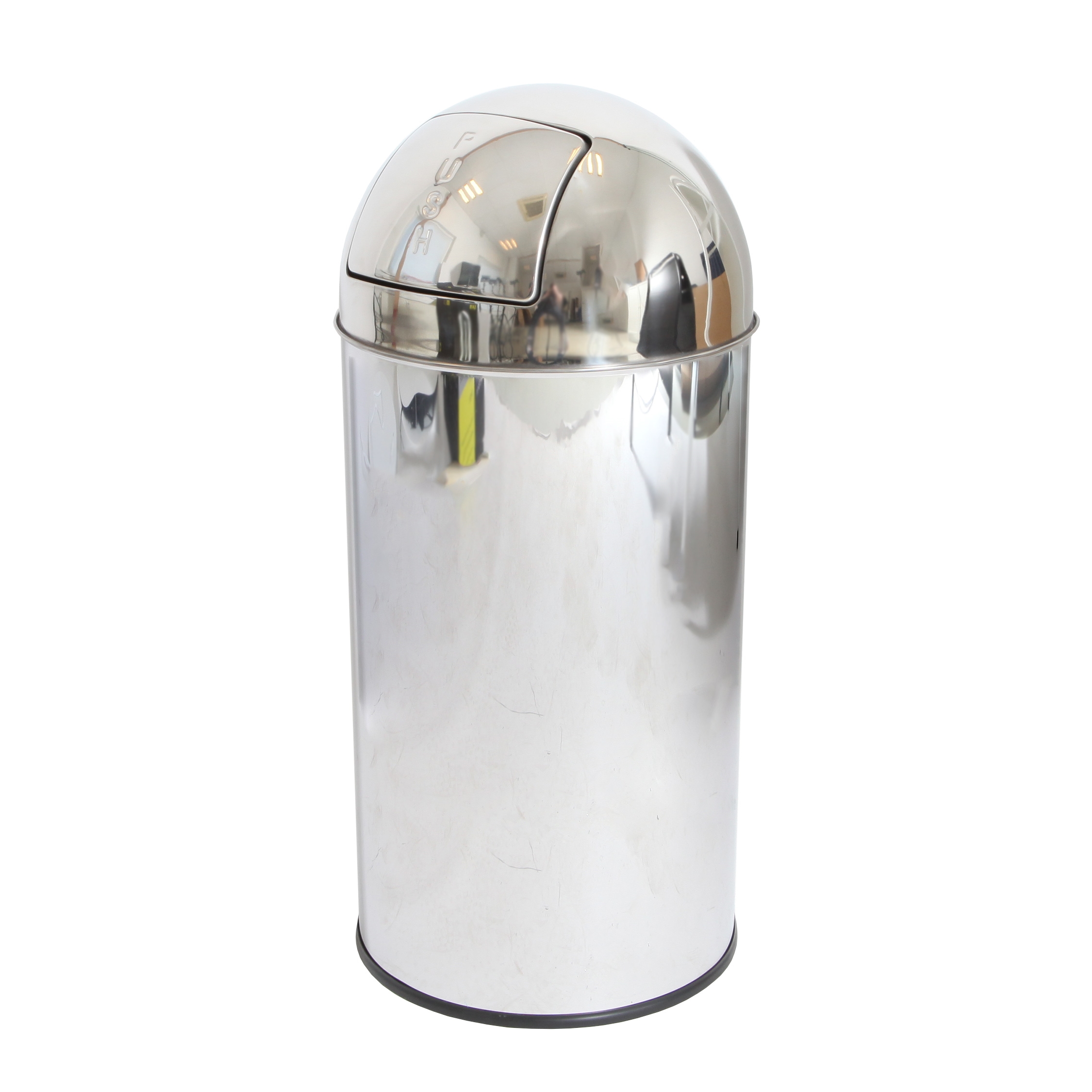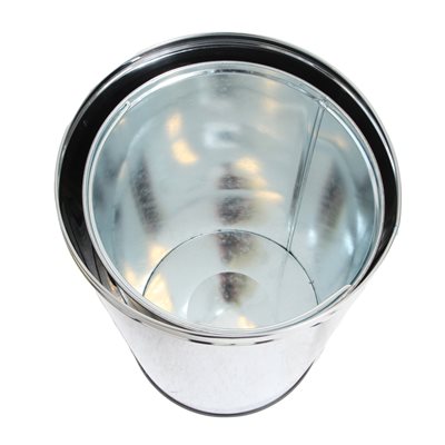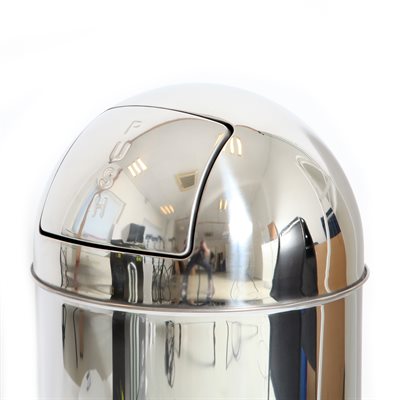 Stilig avfallsbøtte fremstillt i børstet metall og med rustfri galvanisert innvendig bøtte i stål.