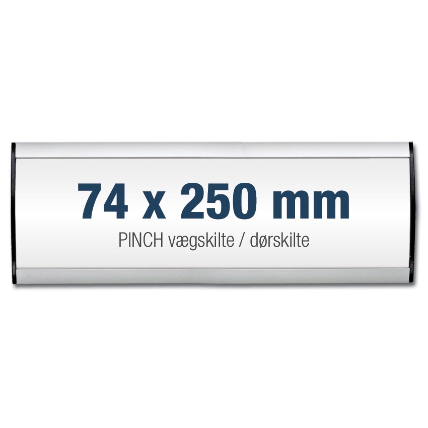 Smart kontorskilt til vegg og dør laget i eloxeret alu med svarte endestykker.