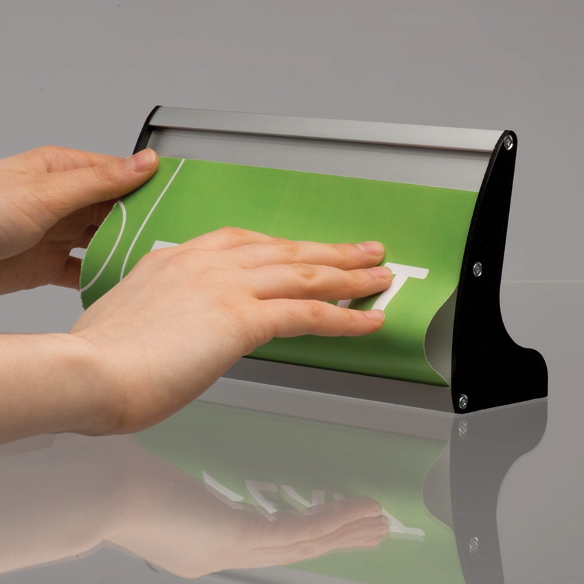 Budskapet skiftes enkelt ut ved å fjerne frontplaten. Deretter kan du innsette ditt papir og montere frontplaten igjen.